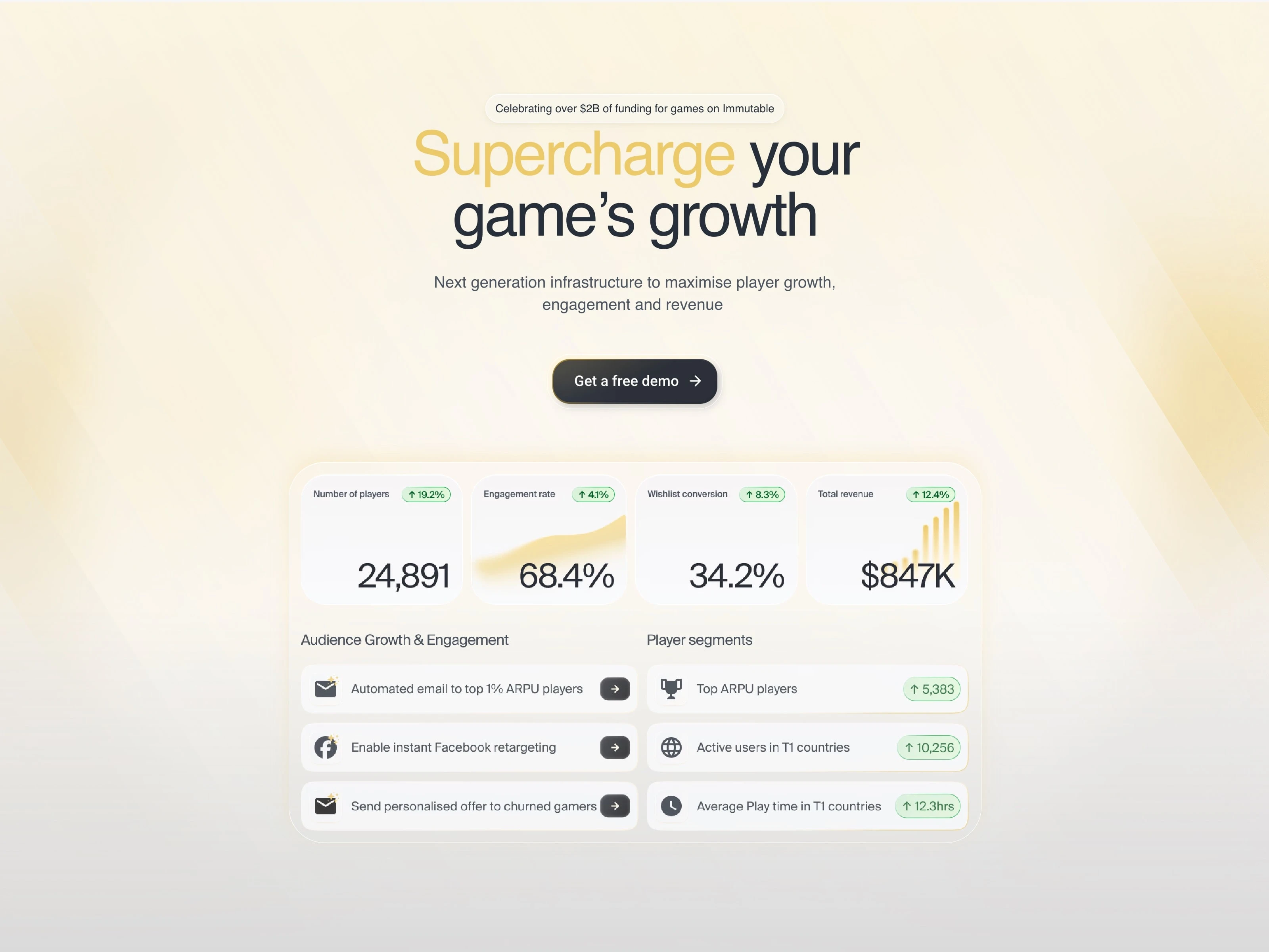 Clear value prop: "Transform anonymous users into high value players with Immutable Audience"