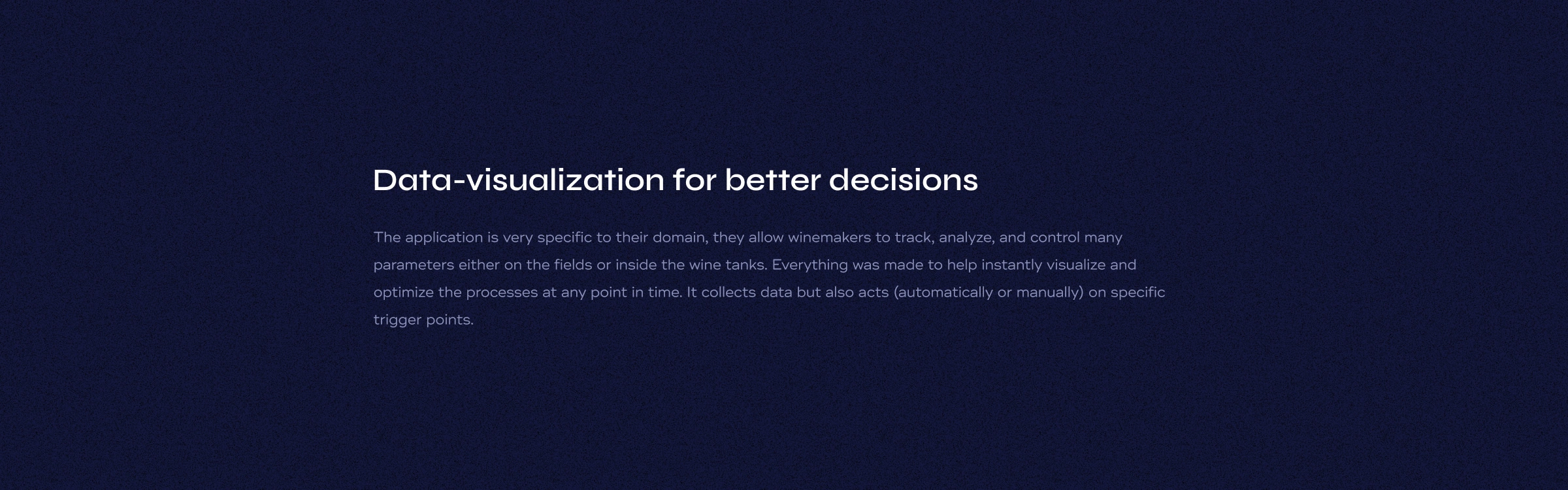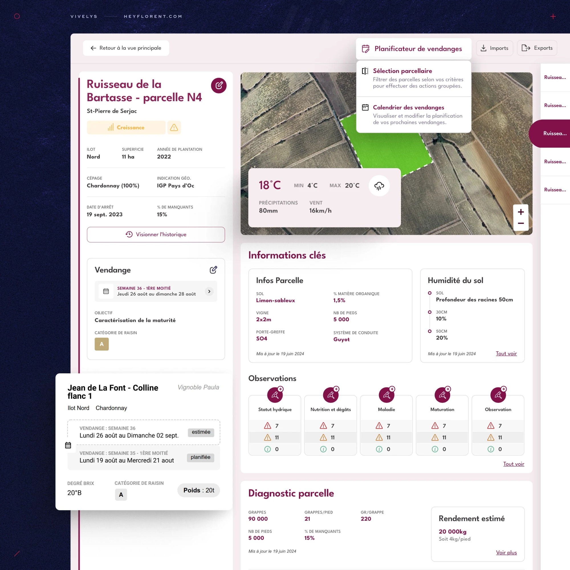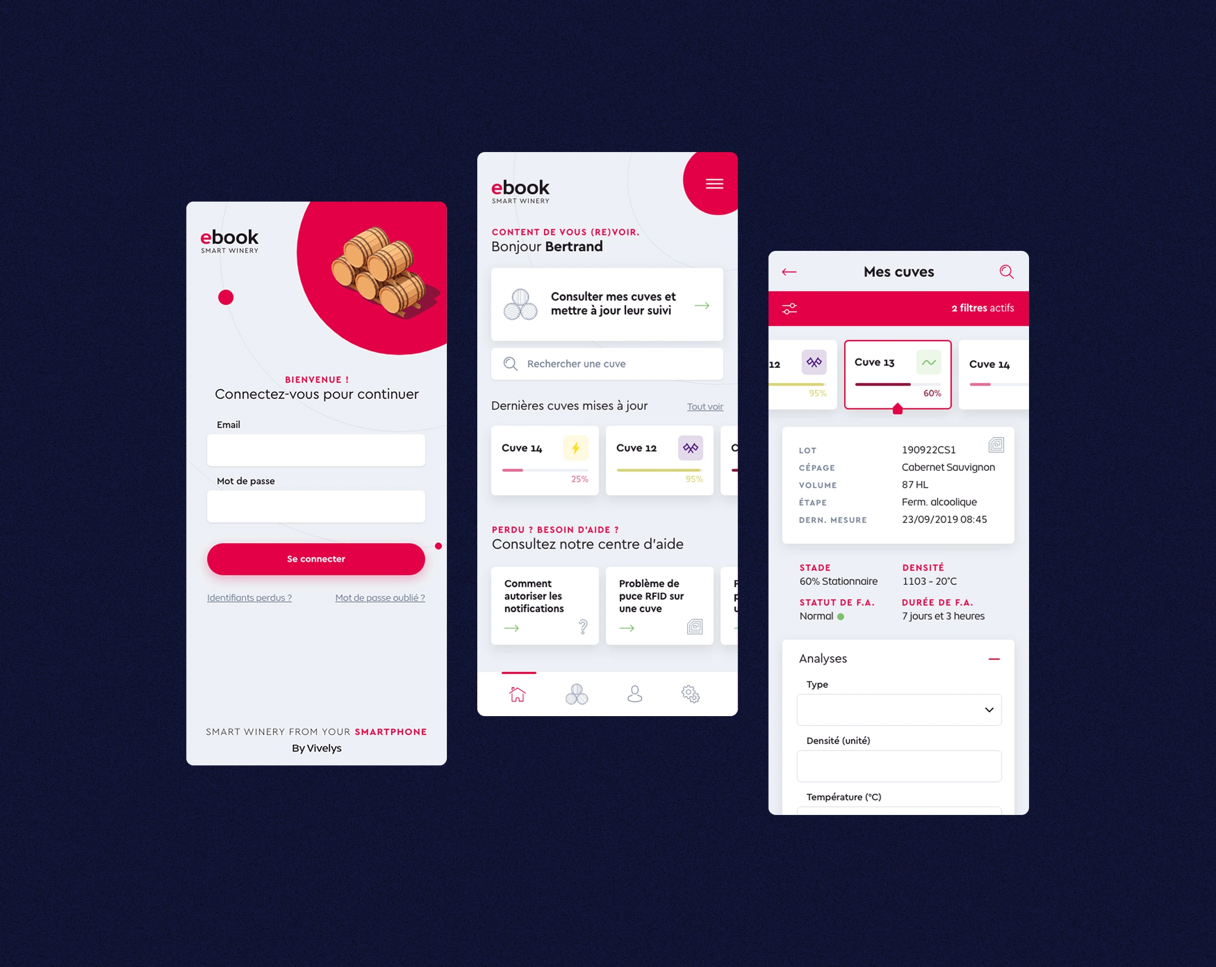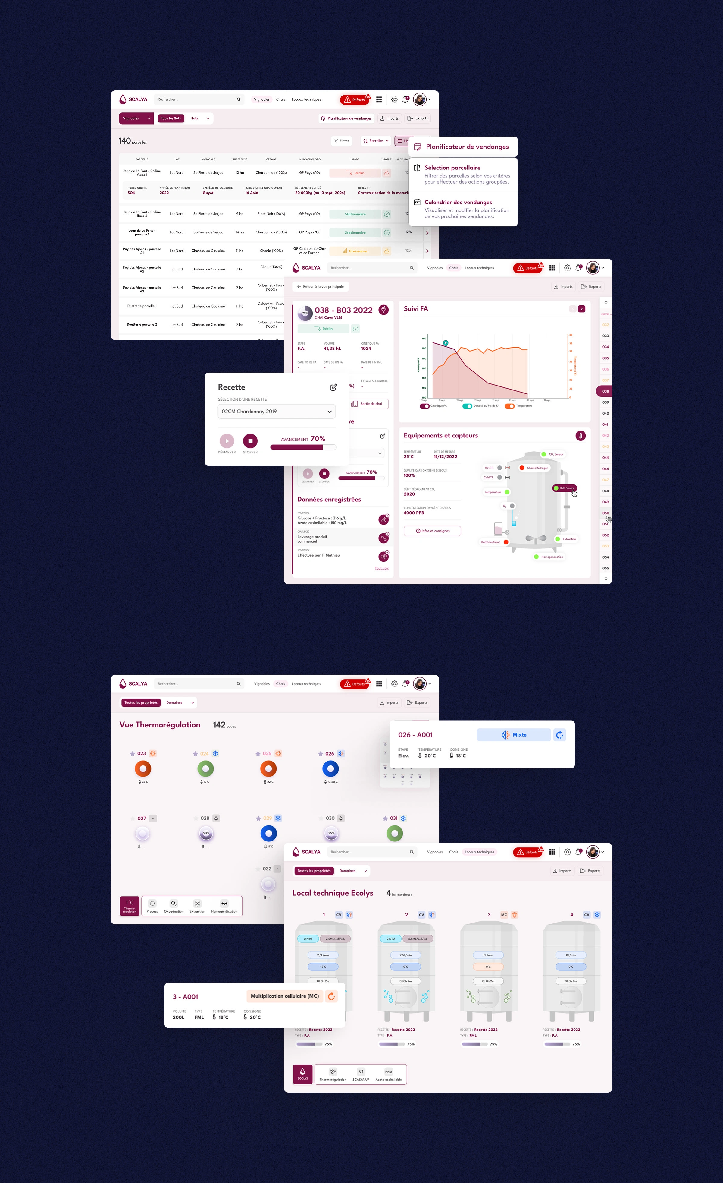 Vivelys provides innovative technical solutions for winemakers, offering tools to monitor and manage every step from the vineyard to the winery. We designed it.