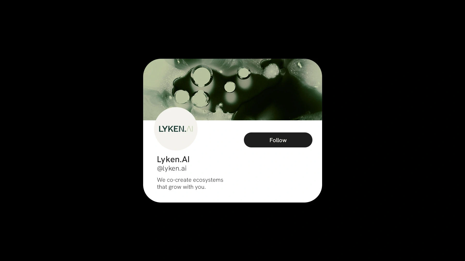 Lyken.AI — a brand inspired by lichen, a quiet yet powerful symbol of resilience, adaptability, and symbiosis in nature.