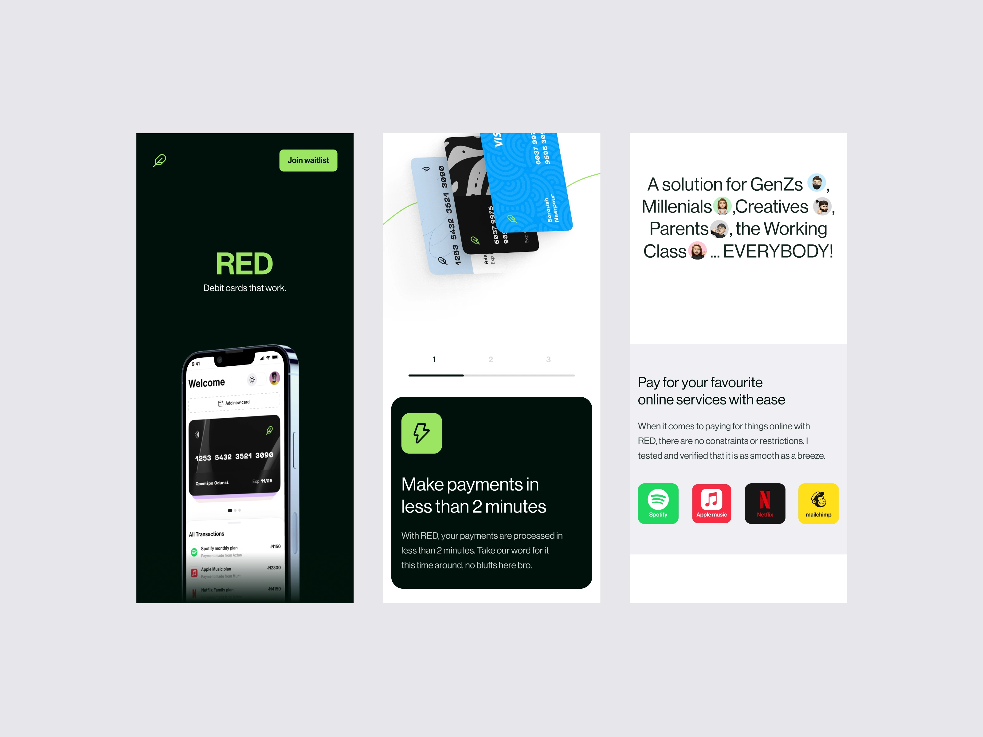 I worked on a Landing page for RED a Fintech virtual card provider.