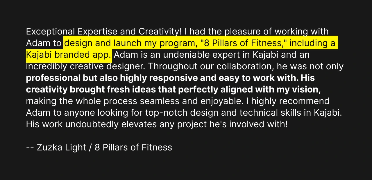 Zuzka reached out on Kajabi Experts, looking for a Kajabi Expert to help her redesign her existing website, help her launch a new program for 2026 and build her Kajabi Branded Mobile App