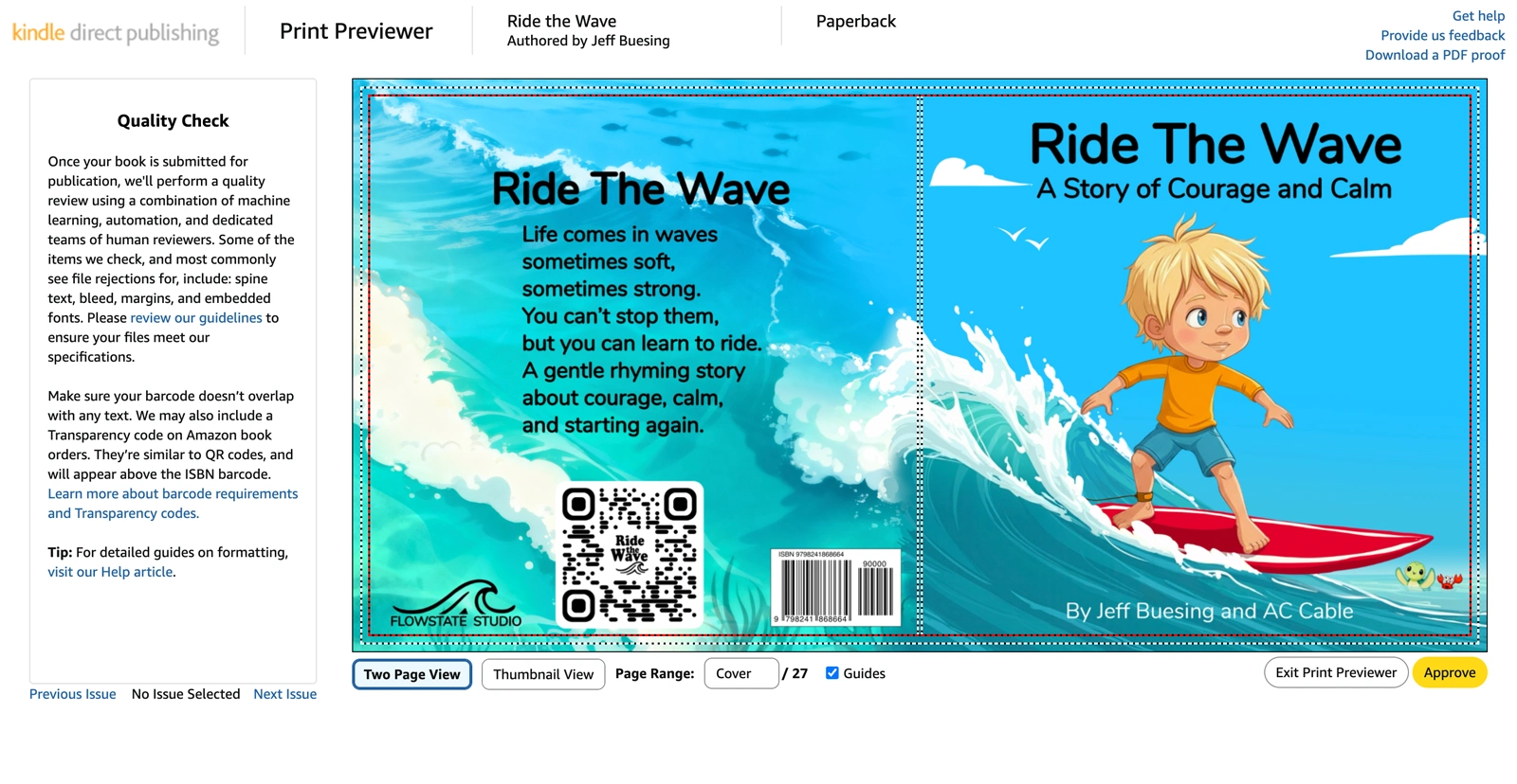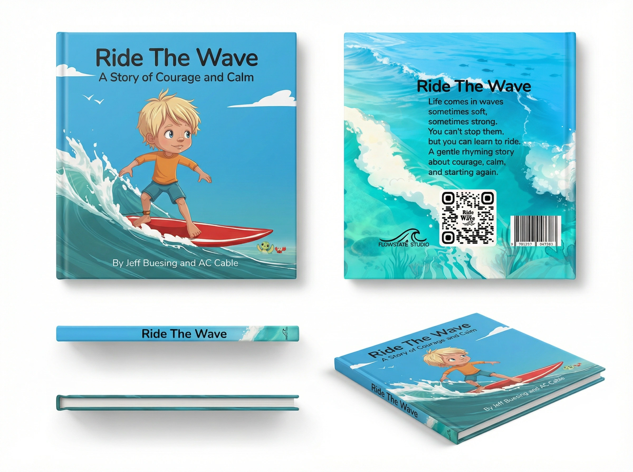 Ride the Wave was created for author Jeff Buesing and published under Flowstate Media LLC. My role included character development, illustration, page layout, print-ready book design, and promotional creative.
