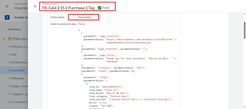 20. Successfully tested the Purchase tag fired.