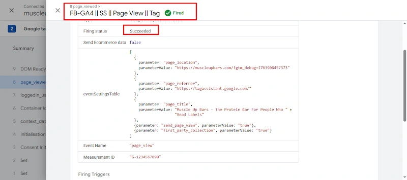 11. Successfully tested the Page View tag fired.
