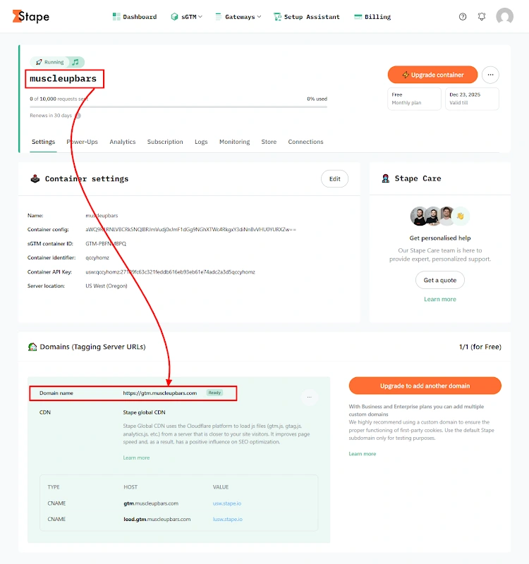 6. Custom sGTM domain successfully verified to ensure stable server side tracking and reliable first party data collection.