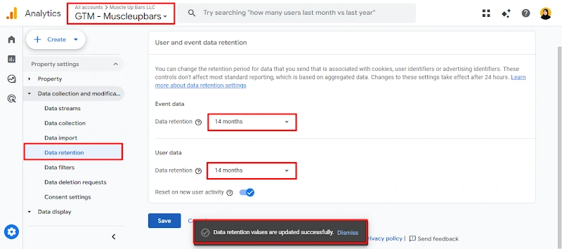 5. GA4 data retention extended to 14 months, ensuring longer historical data for deeper analysis and more accurate performance trends.