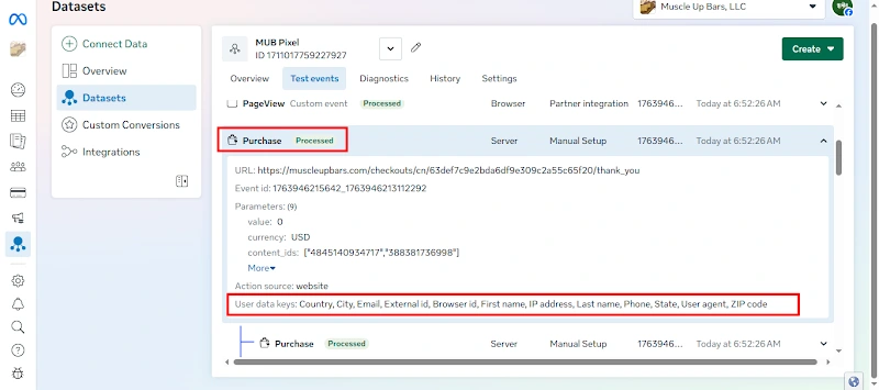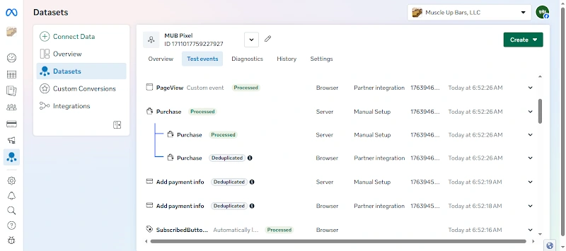 24. Facebook Event Manager data received also successfully deduplicated