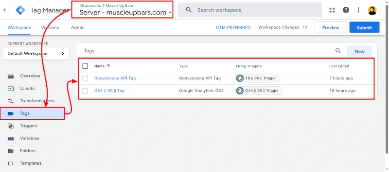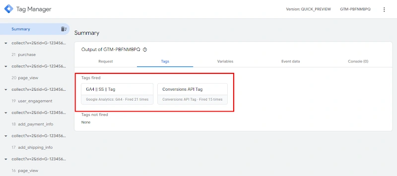 23. Server container preview mode and server tag are properly fired