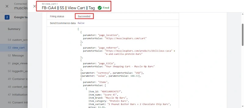 14. Successfully tested the View Cart tag fired.