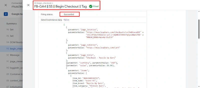 16. Successfully tested the begin checkout tag fired.
