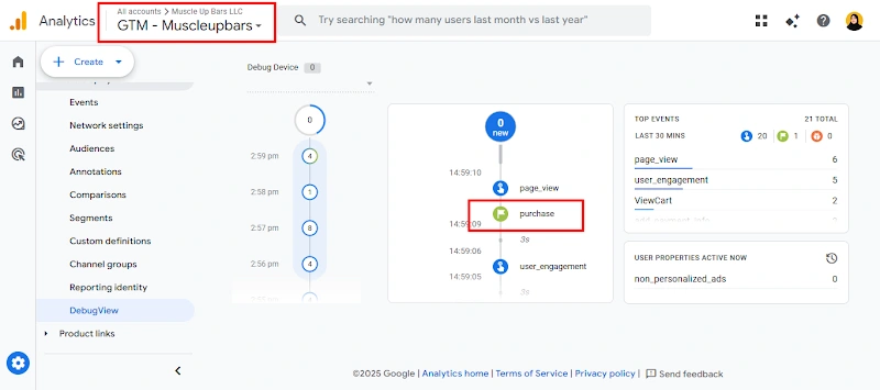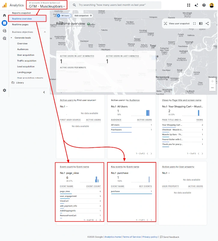 29. All GA4 events successfully received in Realtime