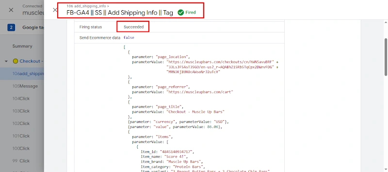 17. Successfully tested the Add Shipping Info tag fired.