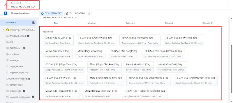 8. All essential GA4 and Meta tracking tags have been fully created inside the Browser Container, covering all major ecommerce and engagement events for complete tracking accuracy.