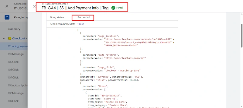 18. Successfully tested the Add Payment Info tag fired.