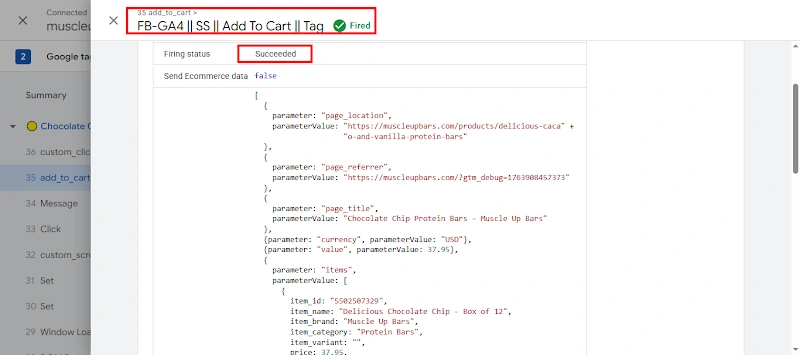 13. Successfully tested the Add To Cart tag fired.