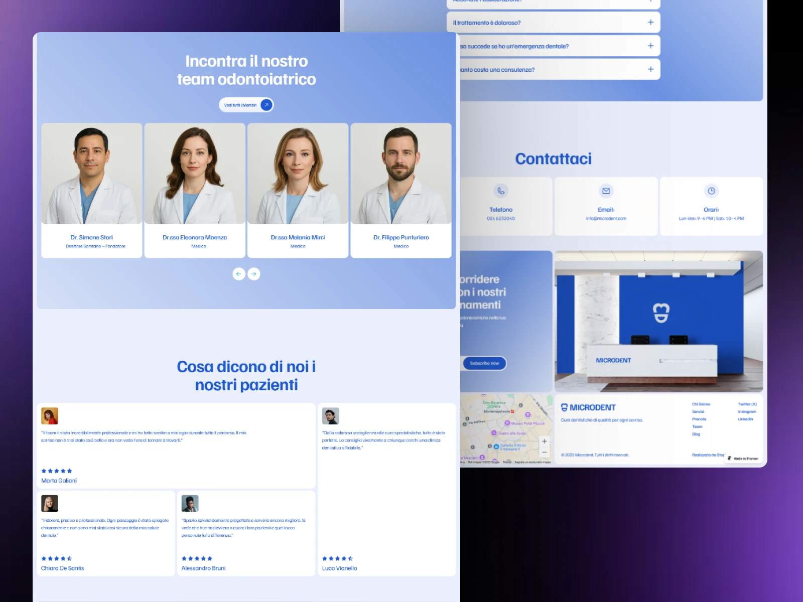 Modern and responsive website for a dental clinic, designed to inspire trust and make appointment booking seamless. Built with Framer.