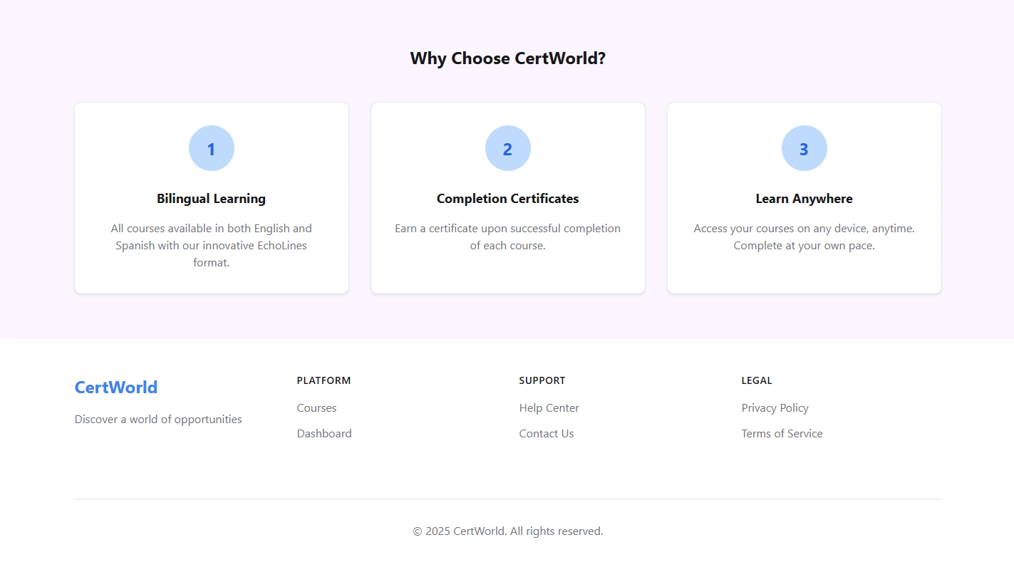 CertWorld is an online courses website built using React, Next.js, Airtable and the ChakraUI library.