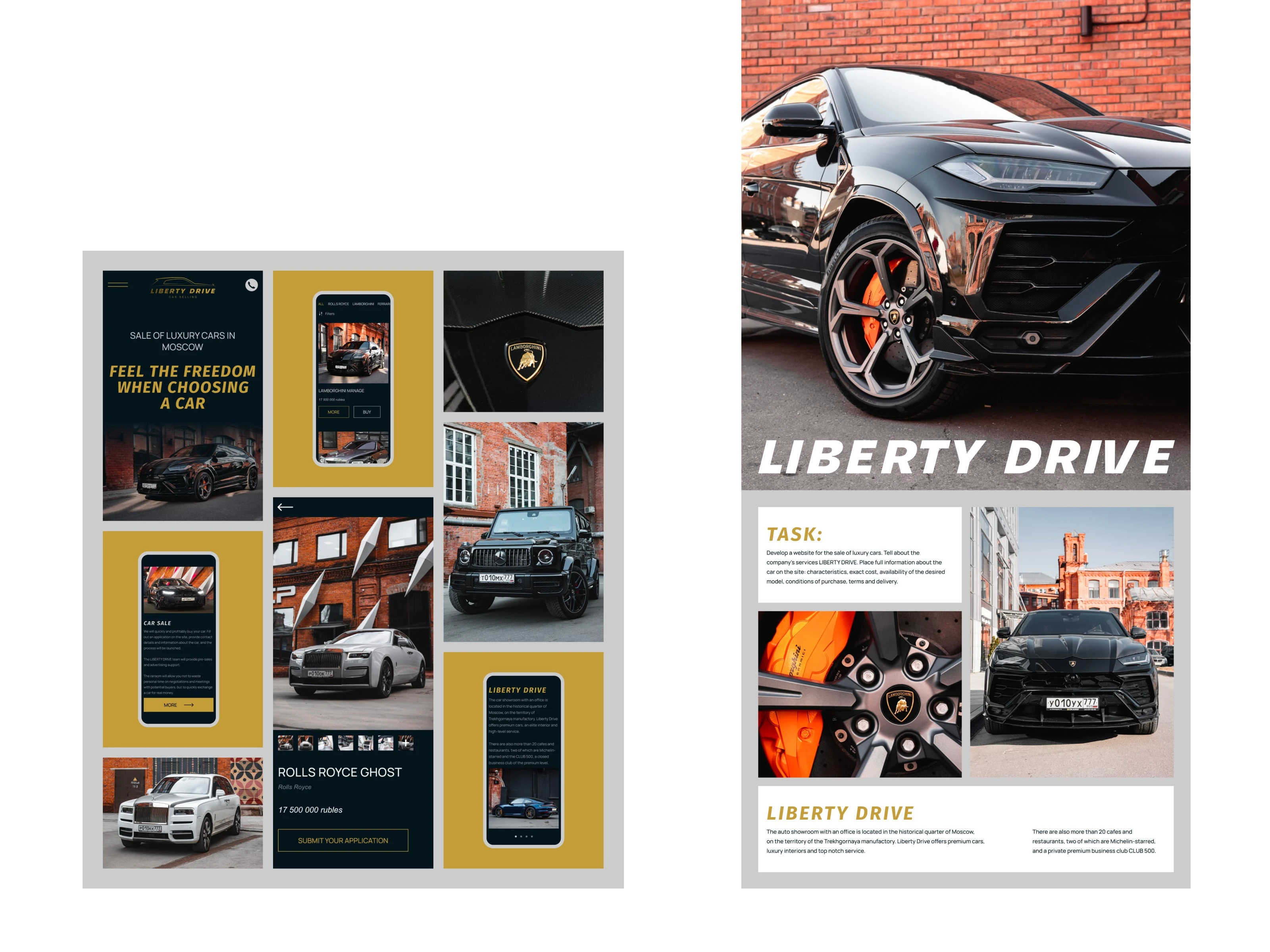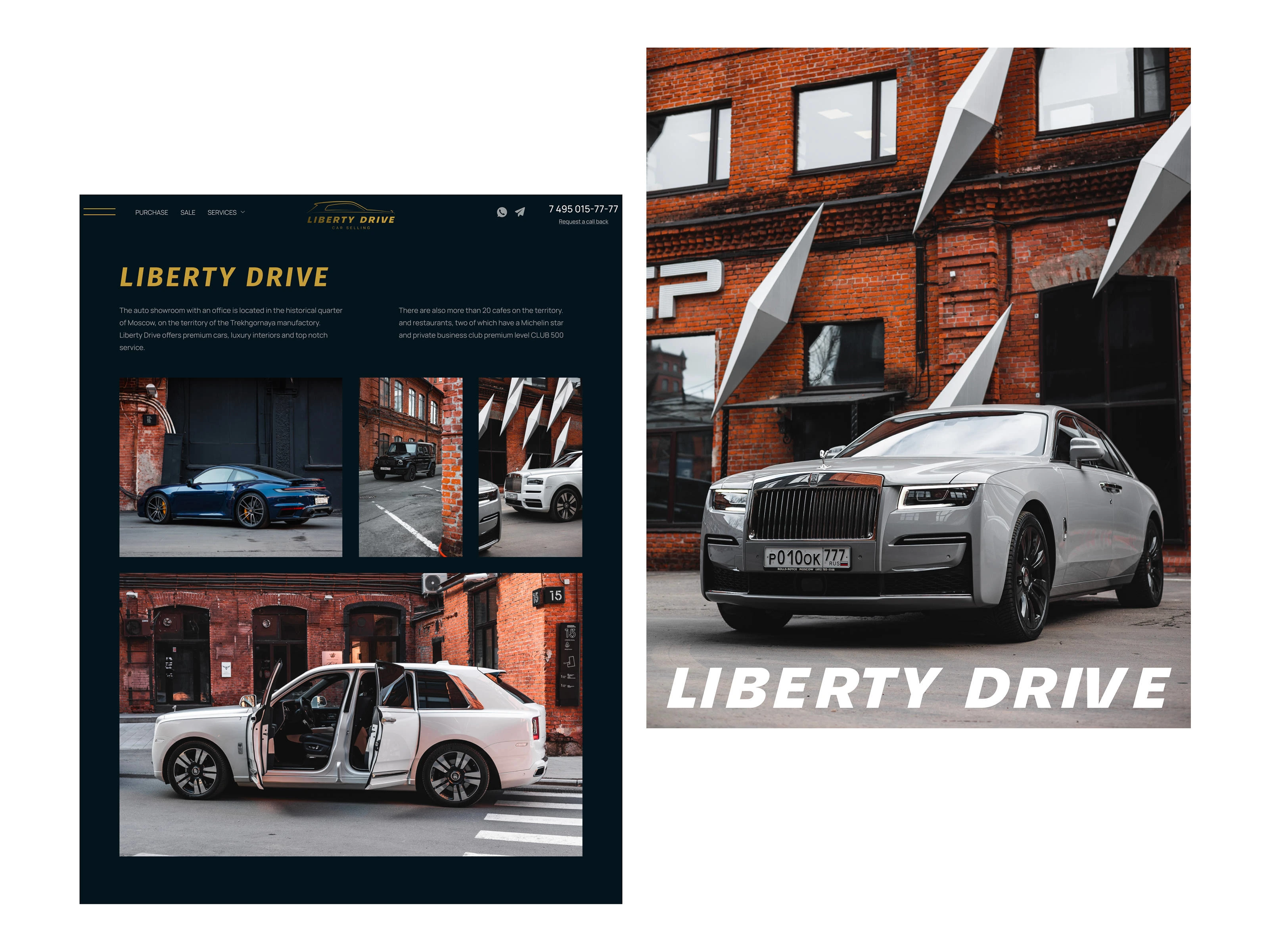 The client, LIBERTY DRIVE, required a platform for luxury vehicle sales. The site's goal was full information delivery: showcasing services, exact pricing, availability, purchase terms, and delivery details. The client's brand is associated with an exclusive business district and top-notch service.