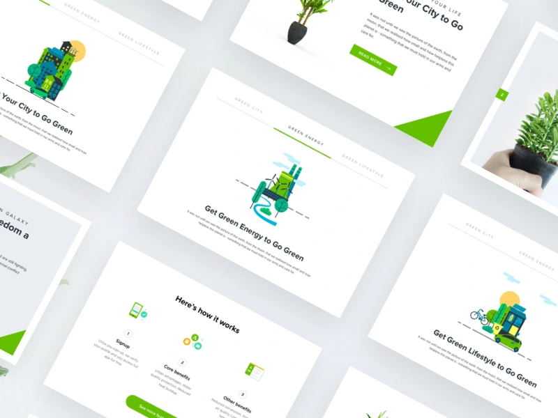 A modern, minimal web concept promoting sustainability and green energy — blending clean layouts, fresh visuals, and purposeful storytelling for impact.