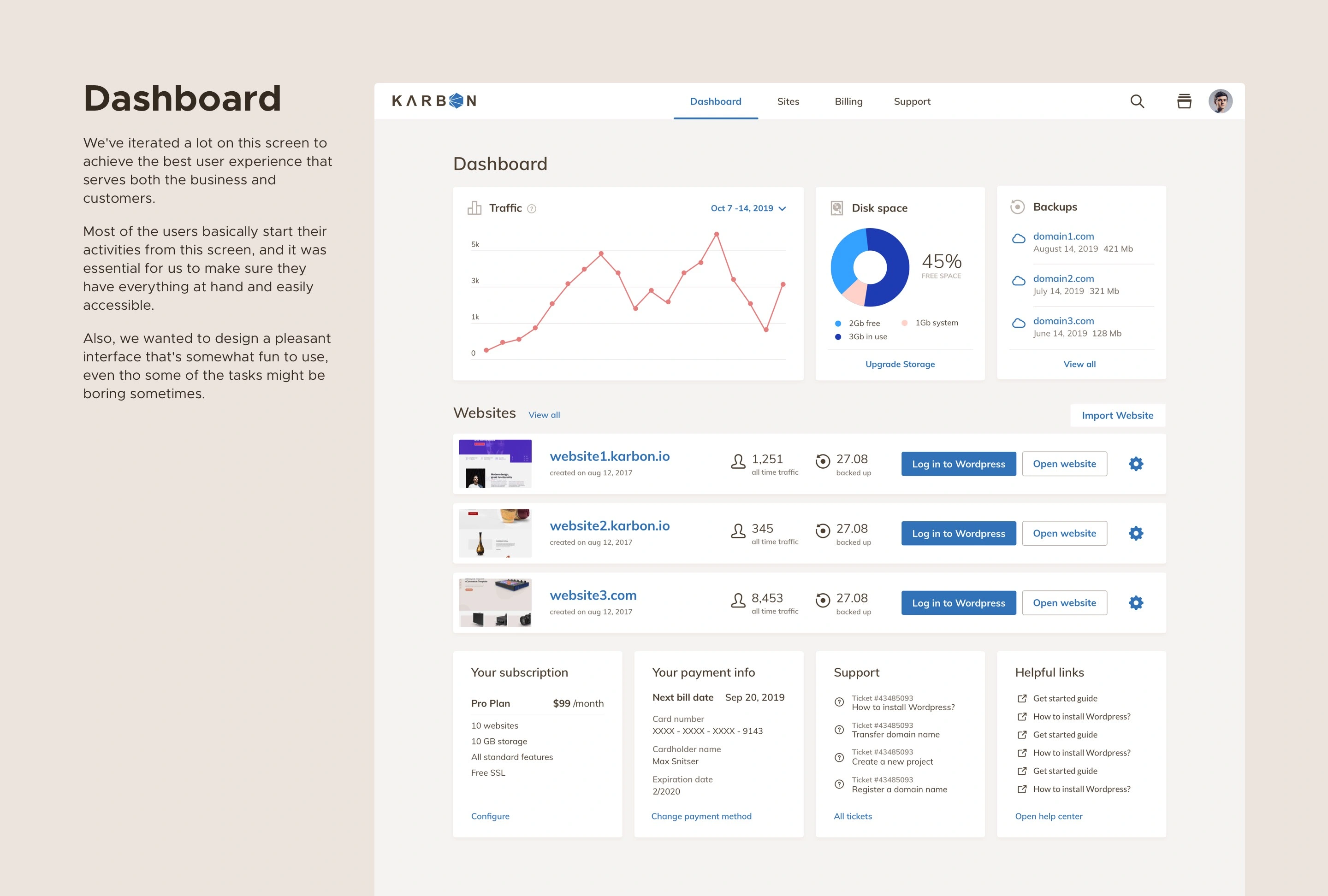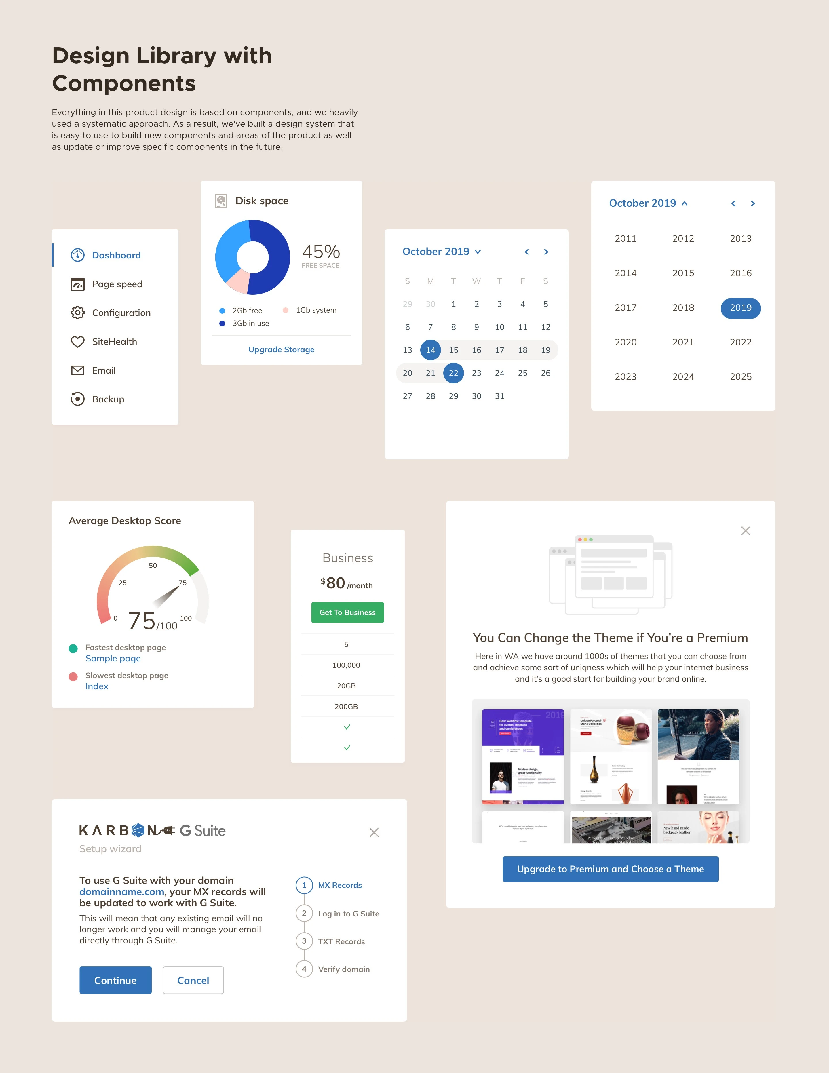 Interface design for a SaaS hosting provider that has a unique set of services and features for niche-oriented communities.