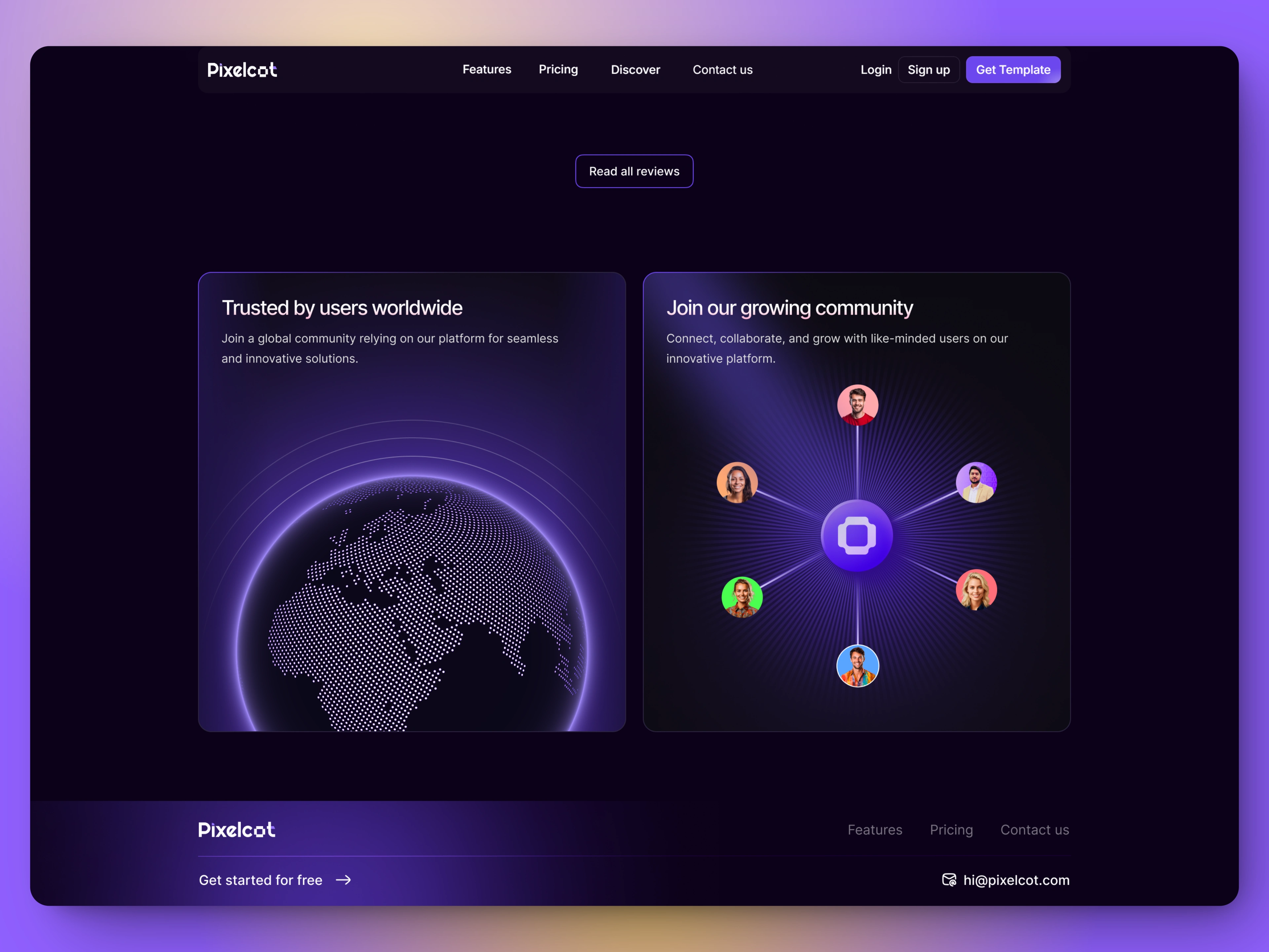 Pixelcot’s Framer site functions as a digital product showcase—targeting SaaS founders, design studios, and modern web creators. Its goal is to communicate clarity, functionality and trust. The homepage emphasizes building a better SaaS experience through seamless, intuitive design.