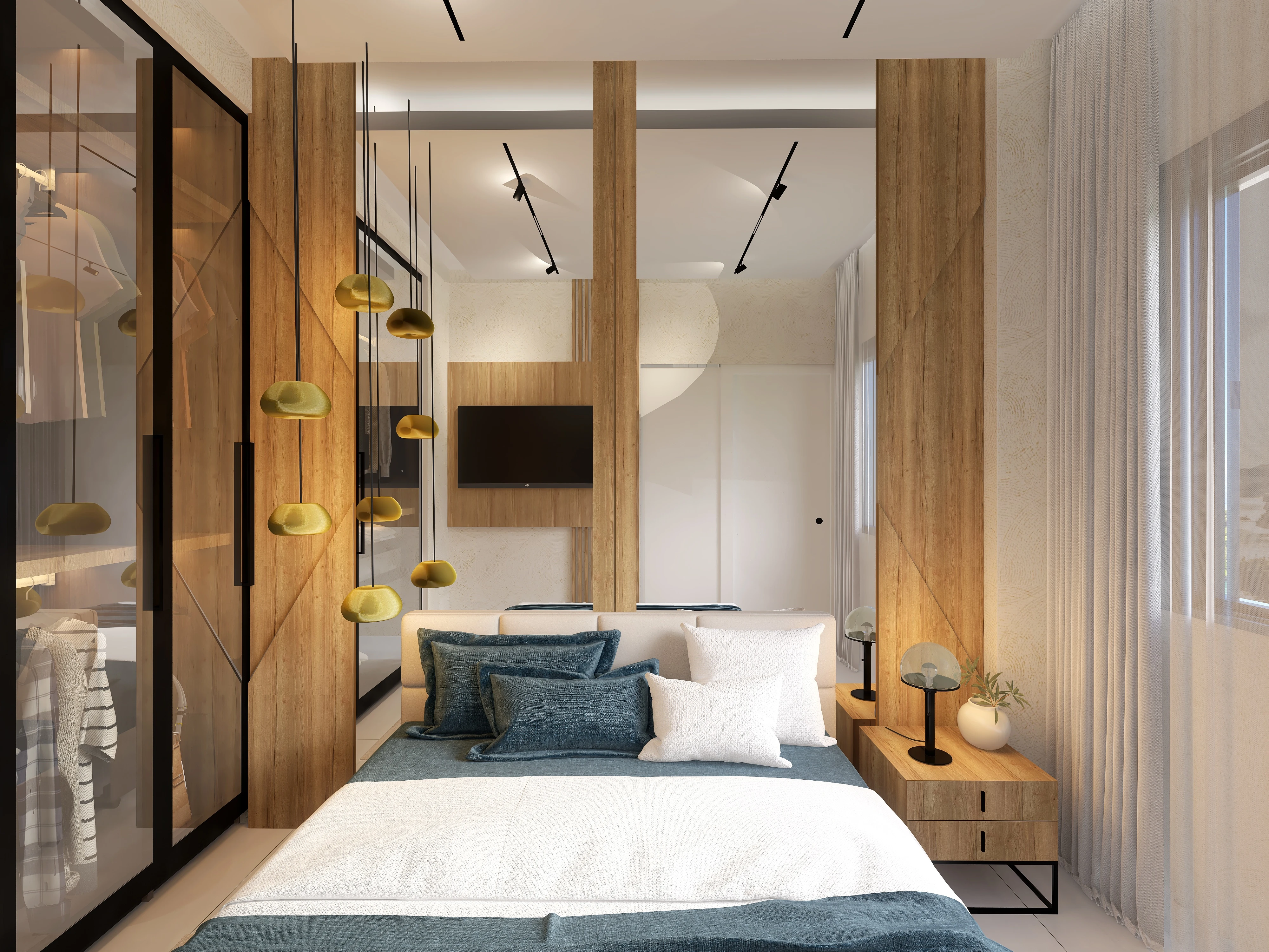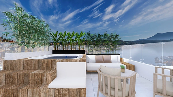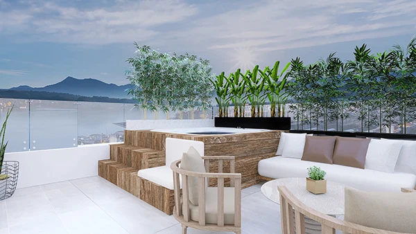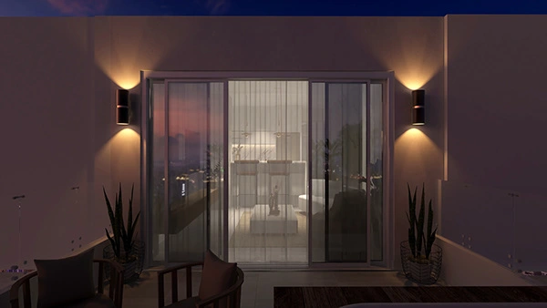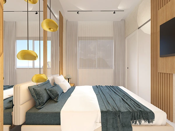 Un proyecto ubicado en un zona turística. Rodeado de playa, sol y arena. Se busca lograr que se sienta como un proyecto en la playa pero sin perder el estilo glamuroso y confortable. Los tonos blancos y madera recrean un espacio sereno y de tranquilidad, algo que se consigue en ambientes como estos. La luz natural juega un papel muy importante en los colores y los materiales seleccionados.