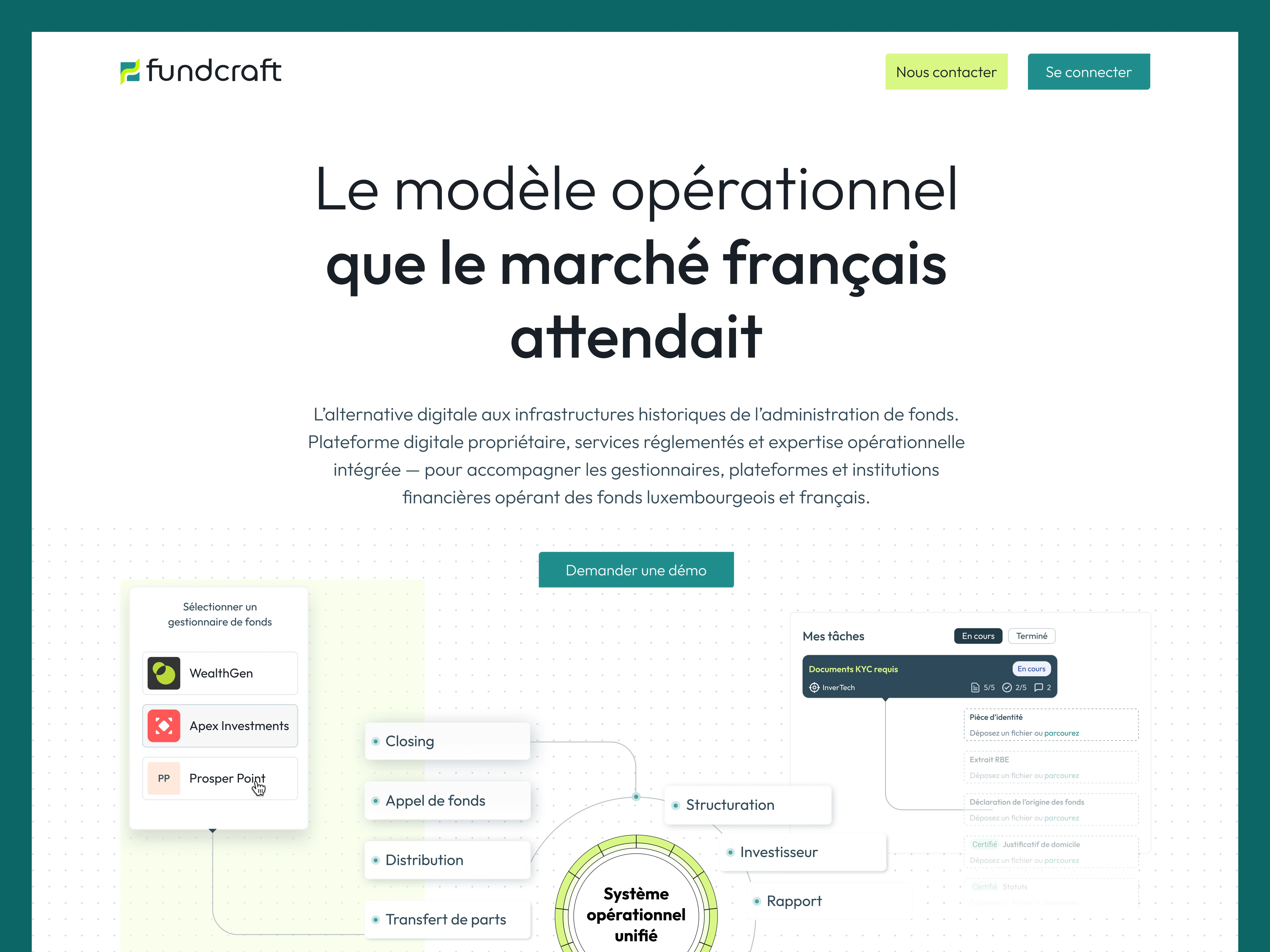 Webflow development for fundcraft France, a Luxembourg-based fintech platform for digital fund operations serving private equity and venture capital managers.