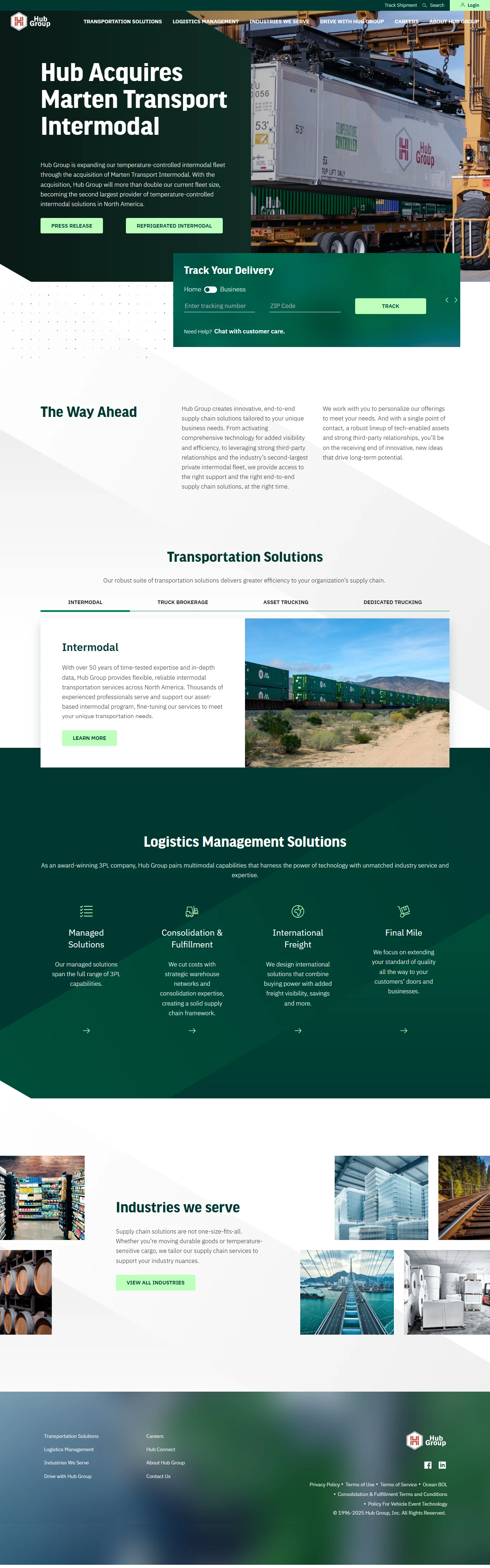 Interactive Storytelling: The homepage was structured as a narrative, using Framer's built-in scroll-driven animations and dynamic sections to walk users through Hub Group's unique value proposition.