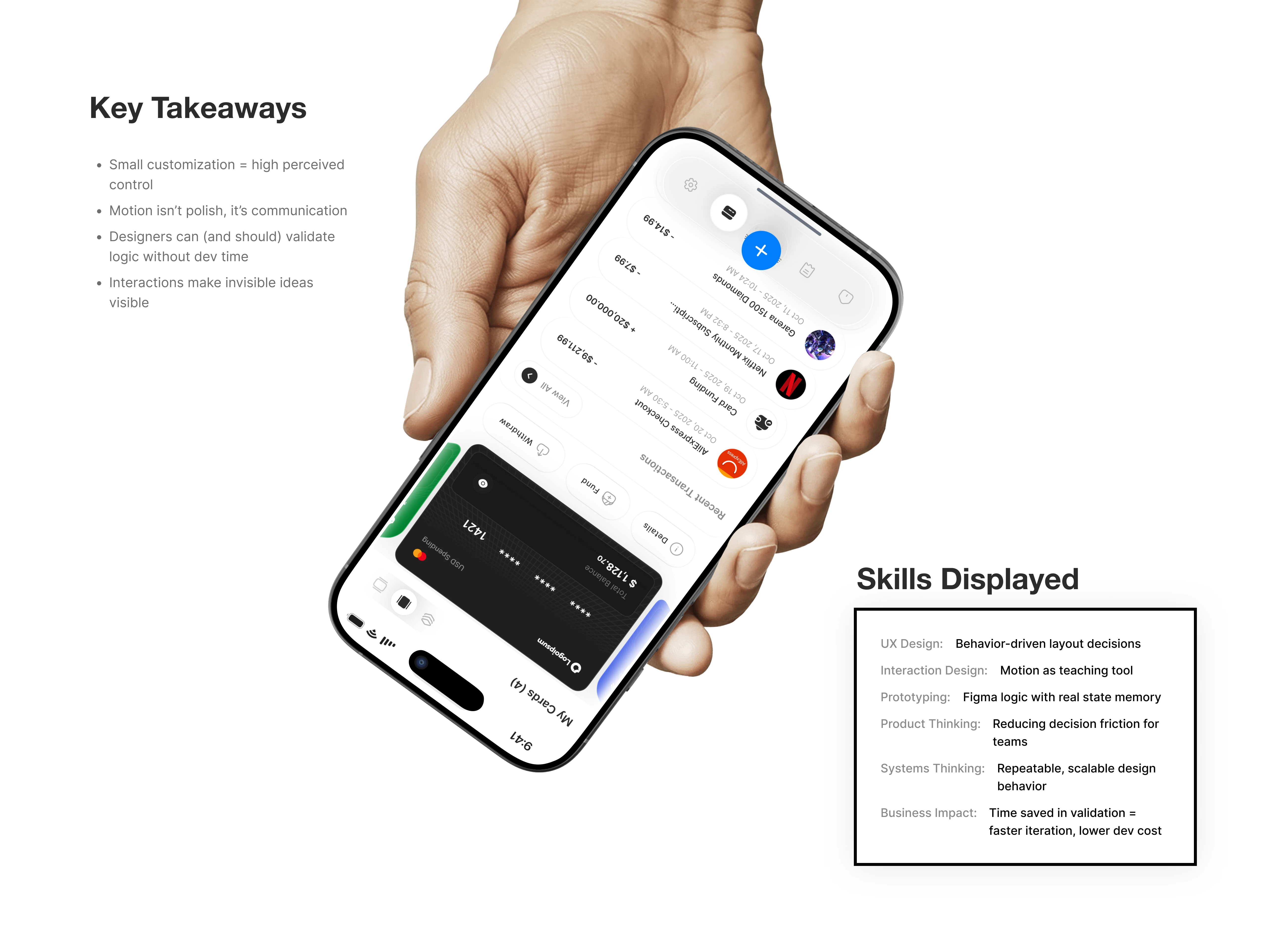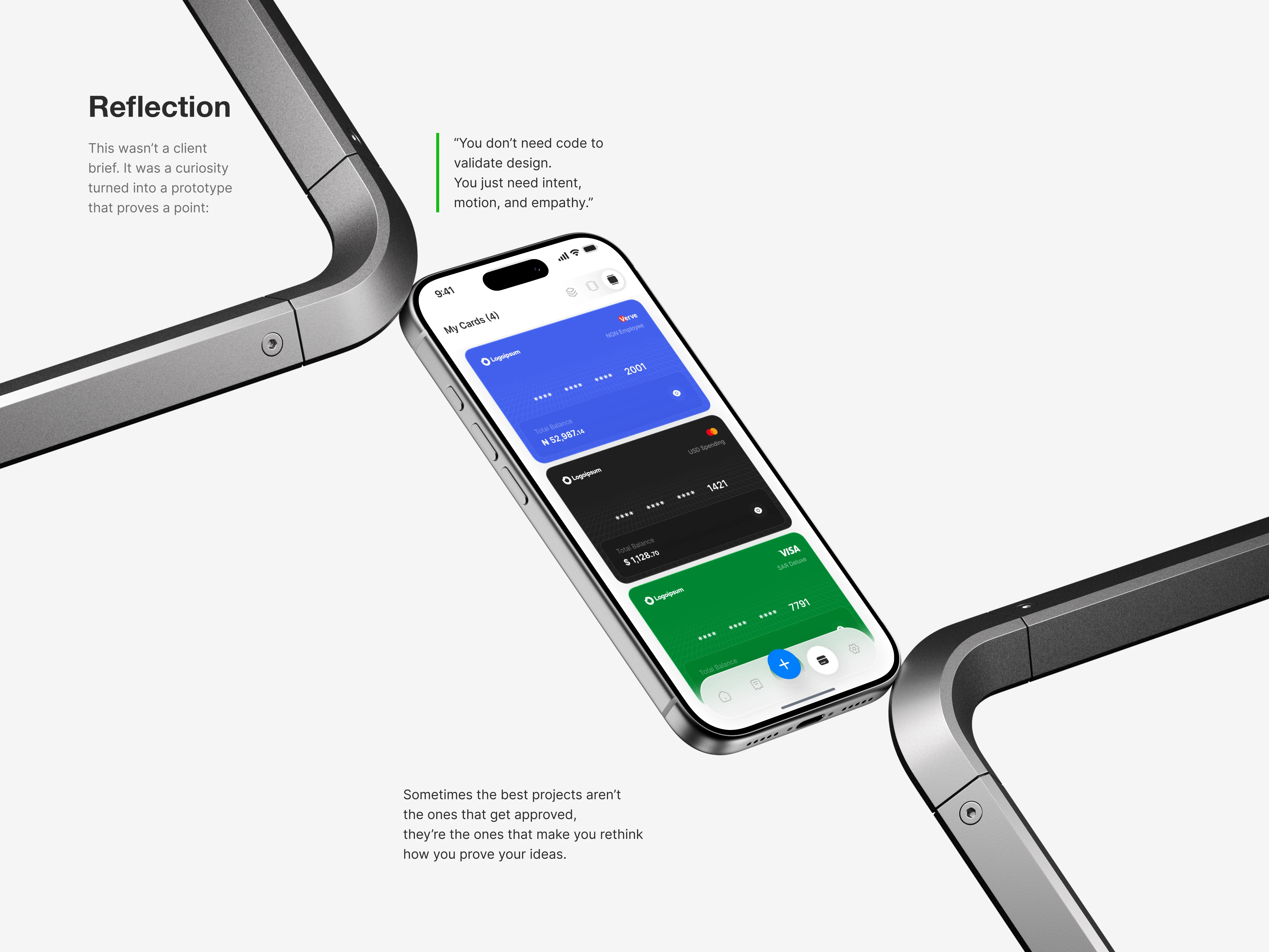 A visual and motion-driven exploration of how interface rhythm shapes trust, speed, and comfort in multi-card fintech apps. Built to validate ideas before code.