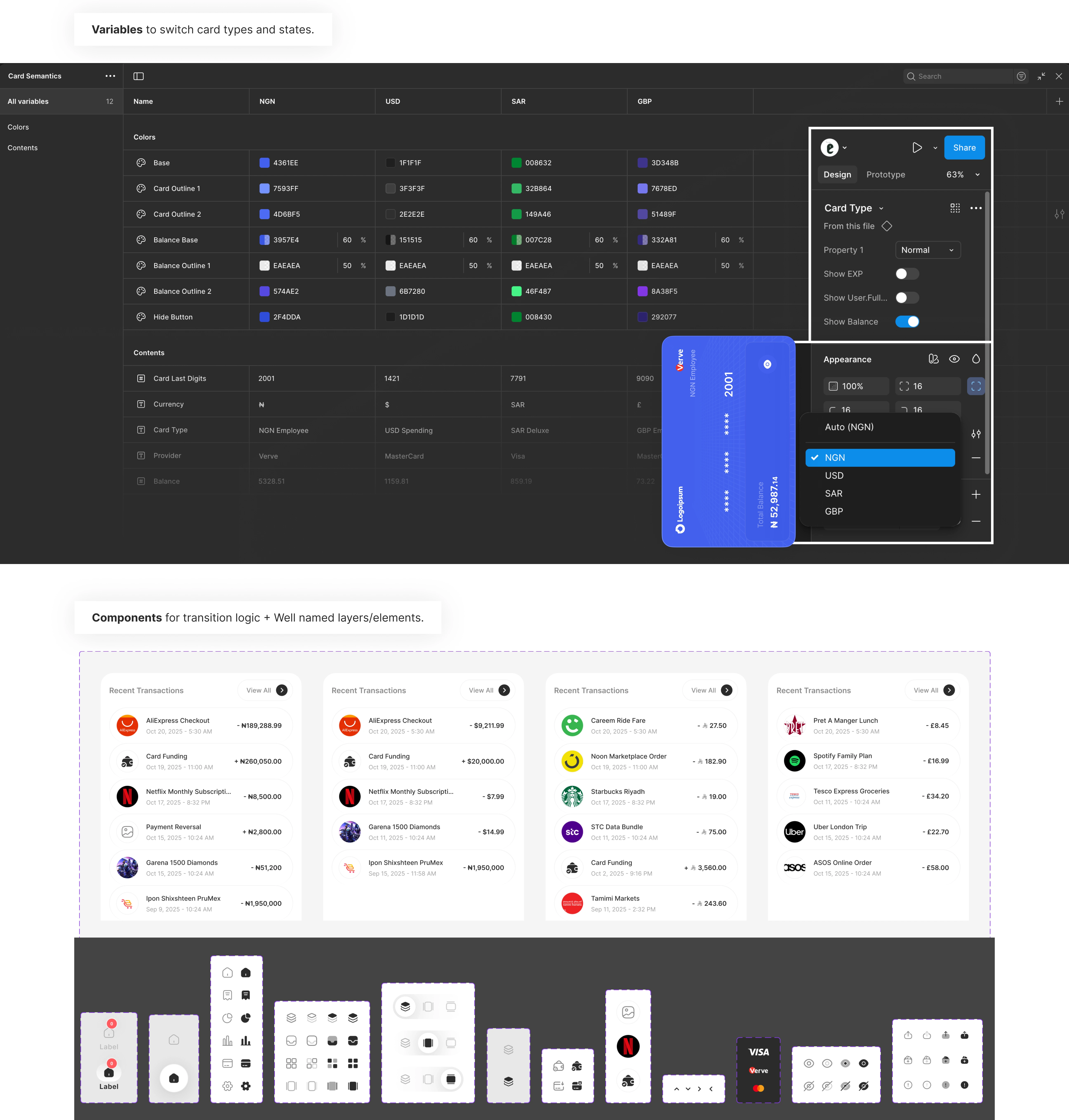 Design a flexible card interface that: