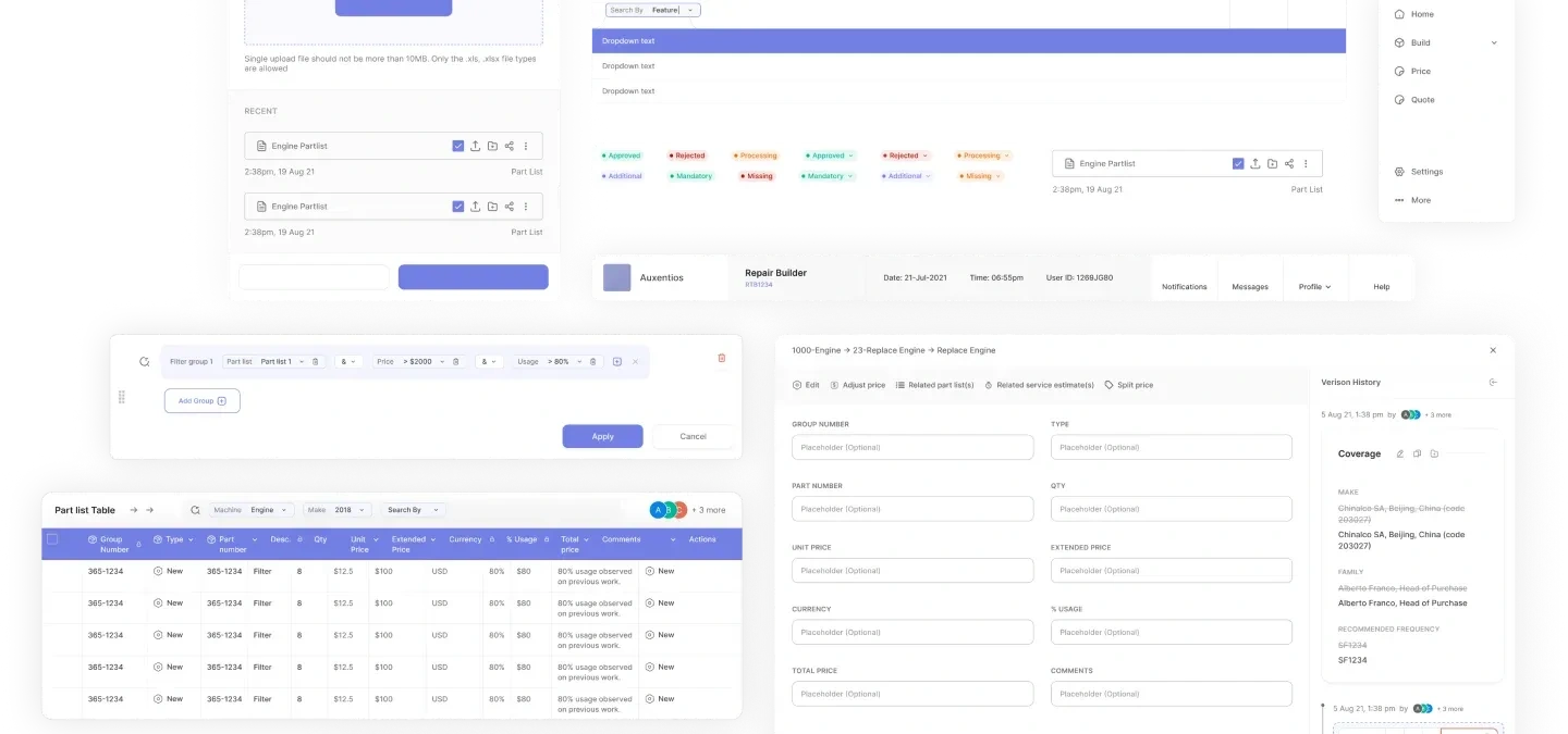 By the end of the design process, we had a design system that covered all the variations of design components across the CPQ application. We also designed the key screens and in-depth use cases. These screens, along with their document layout rules, served as examples for developers on how to build new screens.