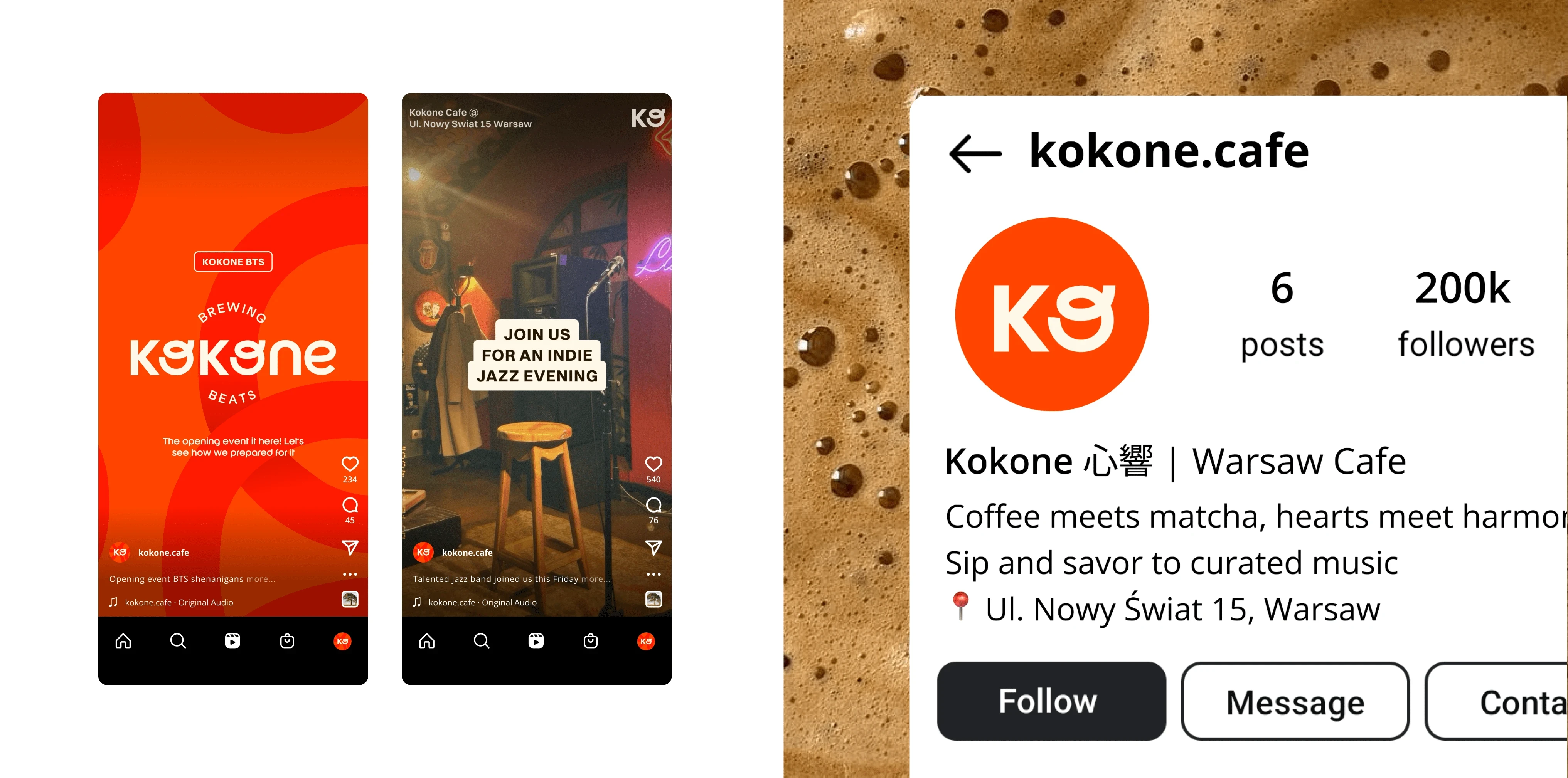 A bold and dynamic brand identity & social media presence for Kokone, a specialty matcha and coffee café where rhythm, flavor, and community come together.
