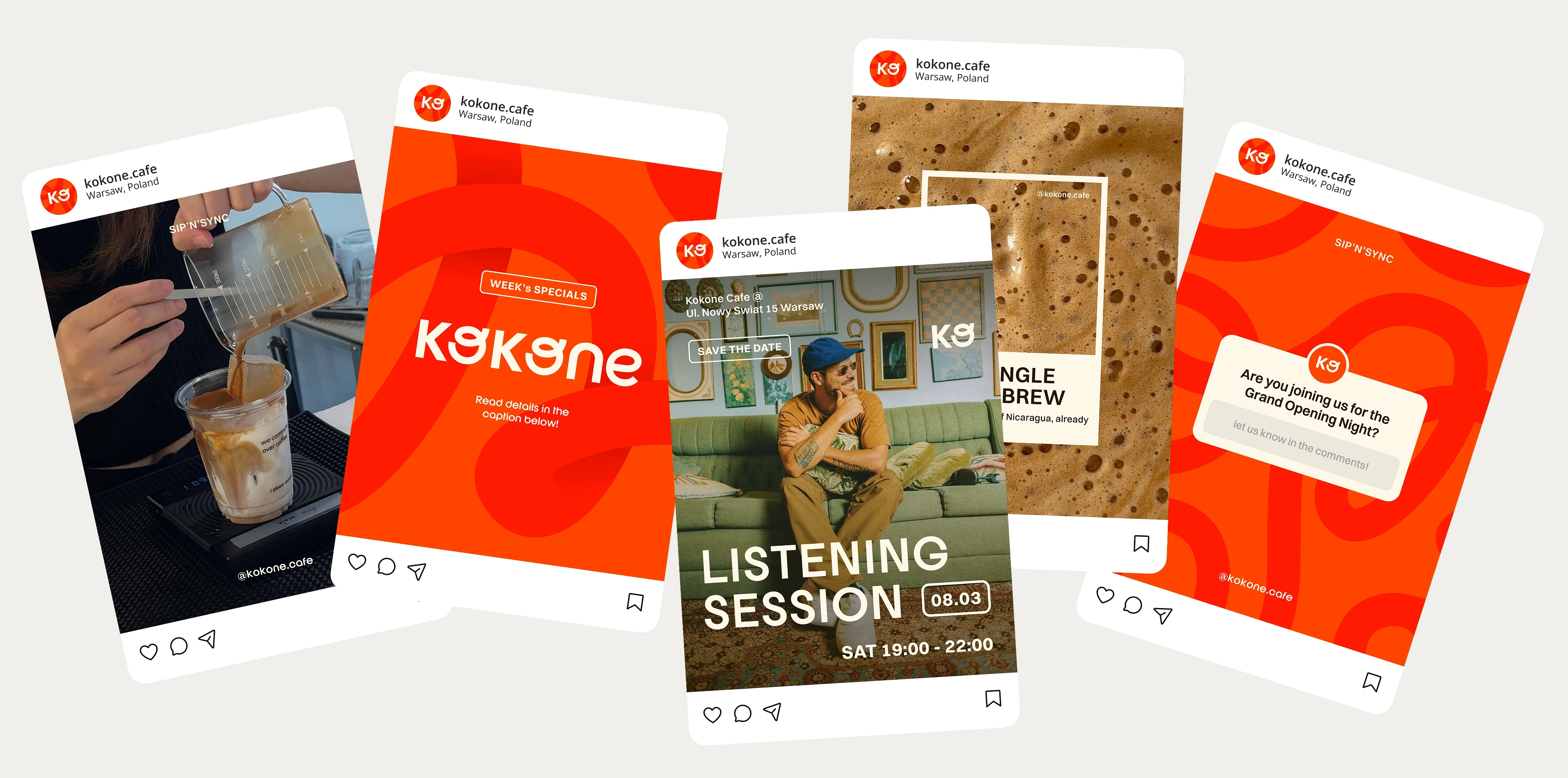 A comprehensive social media kit was designed to amplify Kokone's presence online, featuring eye-catching banners, adaptable avatars, and an Instagram template system built for engagement and storytelling. Every element reinforces the brand's distinct energy, ensuring a seamless and captivating experience across platforms.