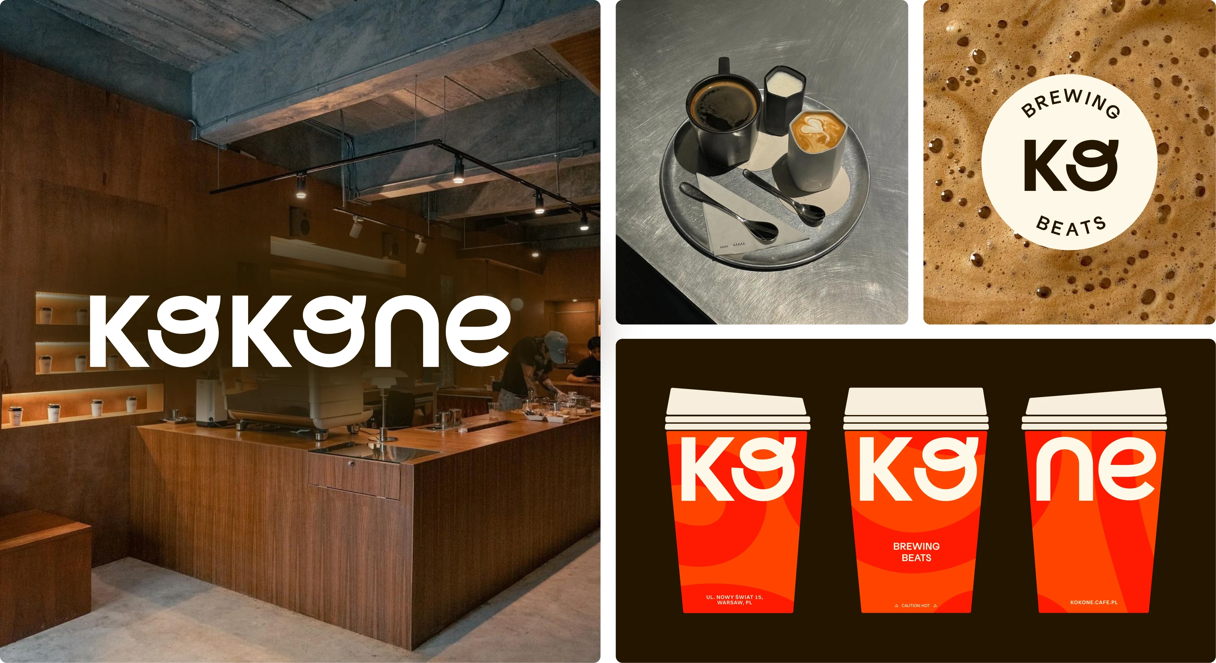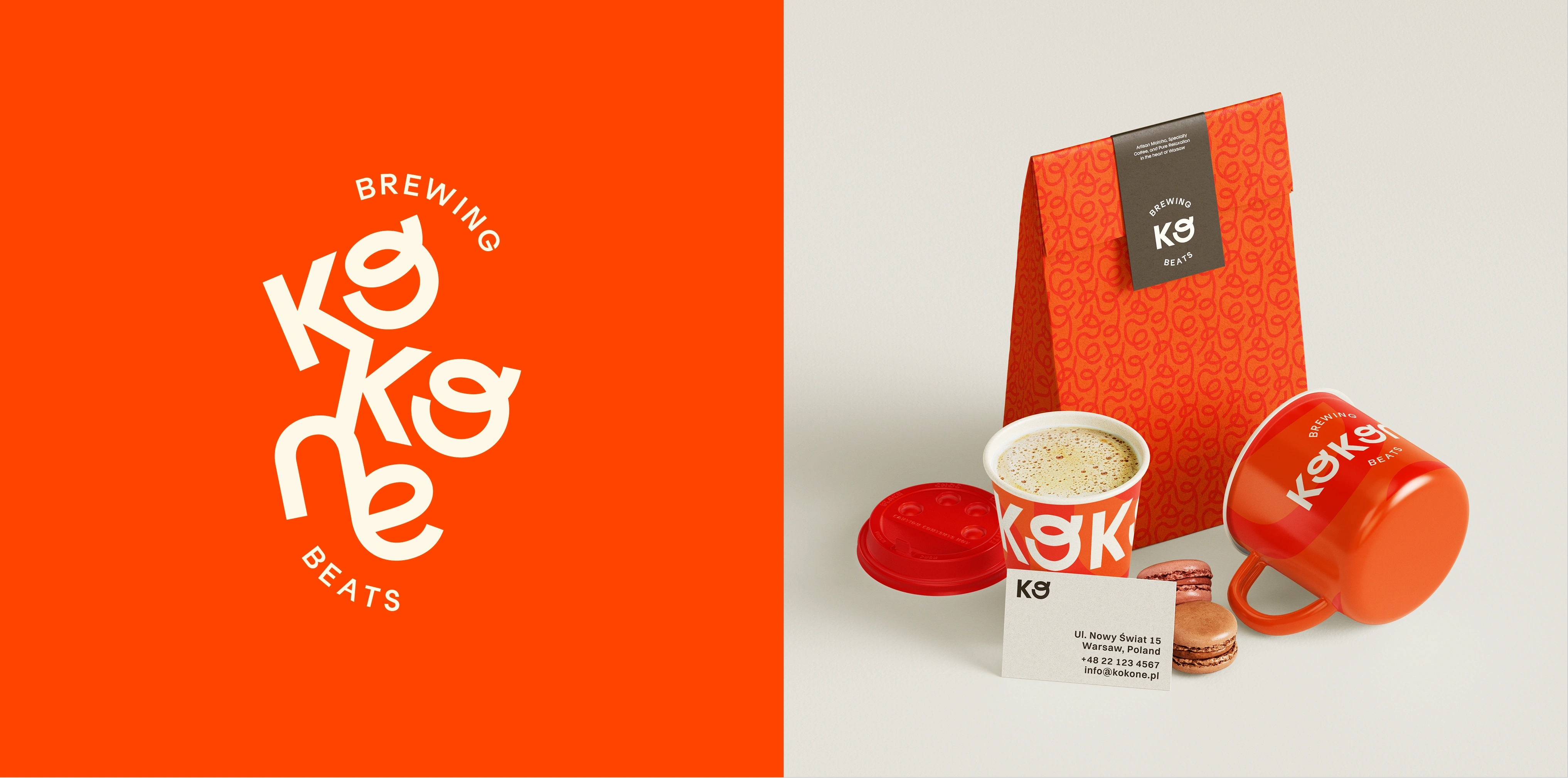 The brand identity is as bold and expressive as the space itself. Vibrant colors, fluid ribbon-like patterns, and playful yet refined typography create a strong visual presence, inspired by the dynamic interplay of sound waves and the artistry of brewing. The result is a brand that stands out - visually striking, full of motion, and unmistakably Kokone.