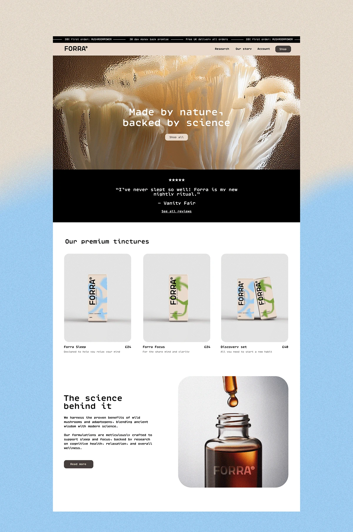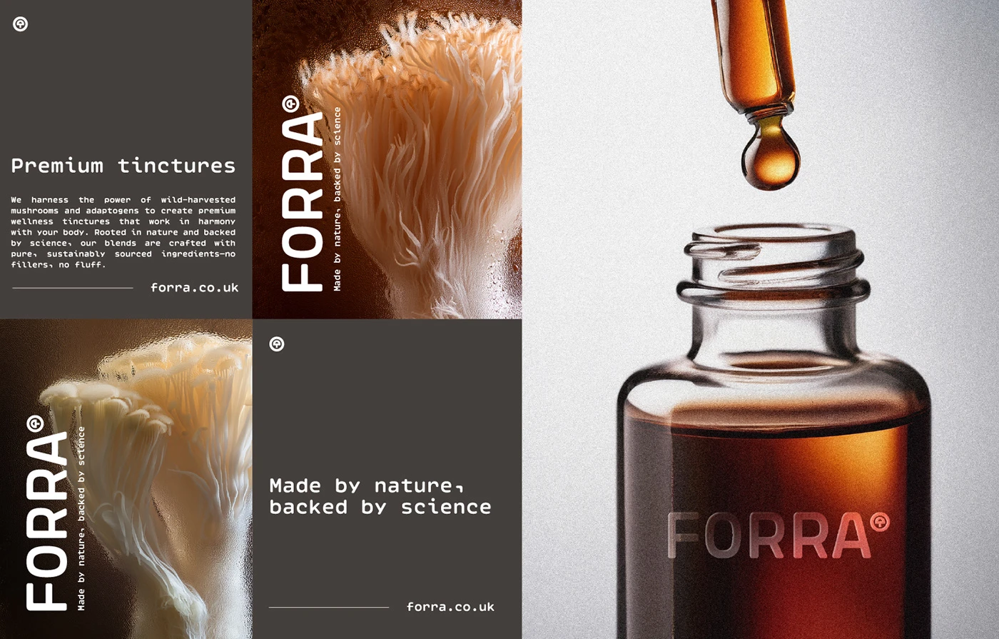 FORRA is a wellness brand with a line of premium wild mushroom tinctures, designed to support cognitive wellness and body.