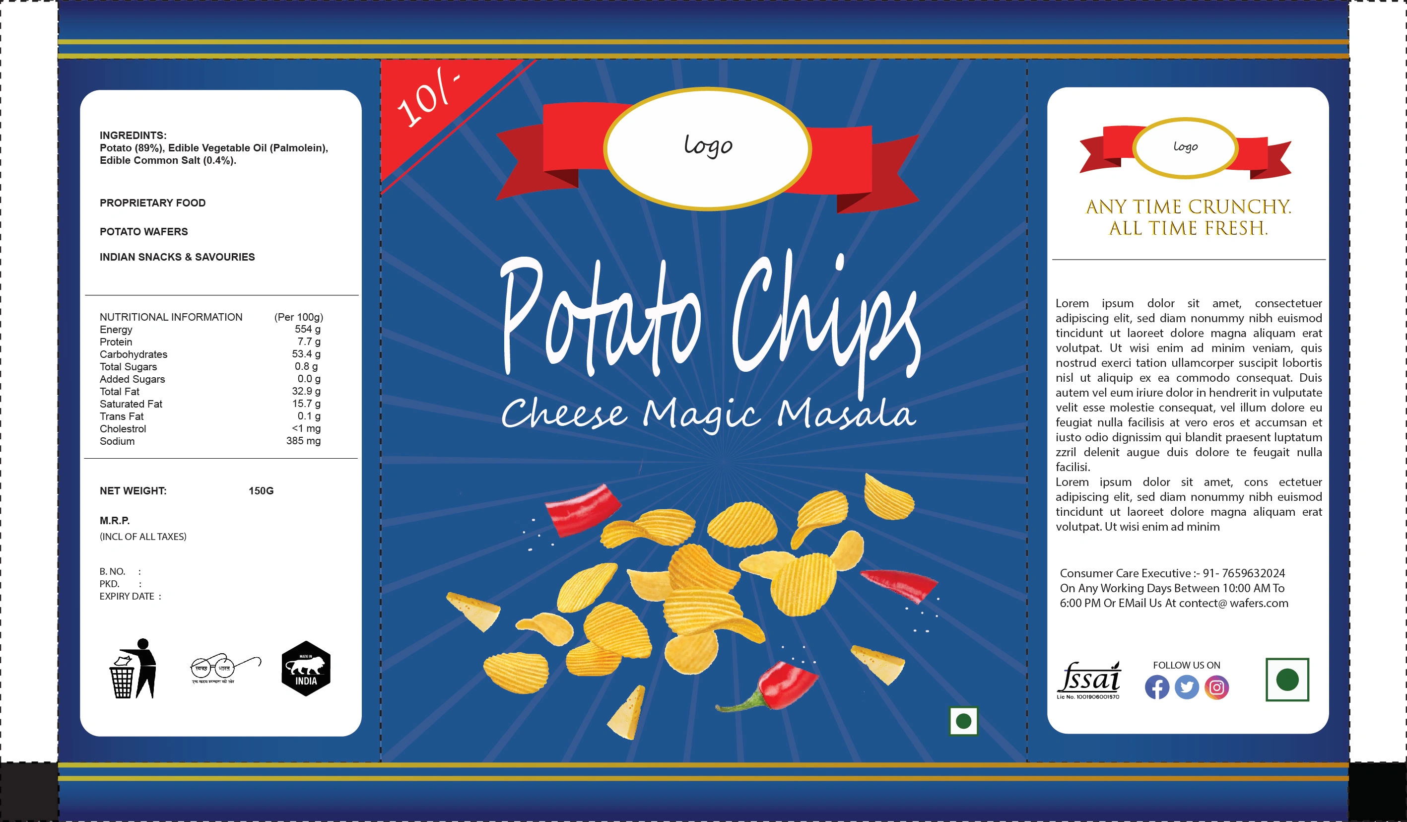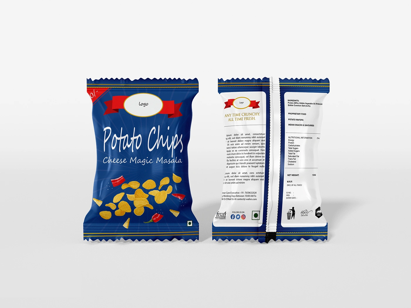 A vibrant and eye-catching chips packet designed to enhance shelf appeal. Focused on clean layout, strong branding, and consumer-friendly packaging.