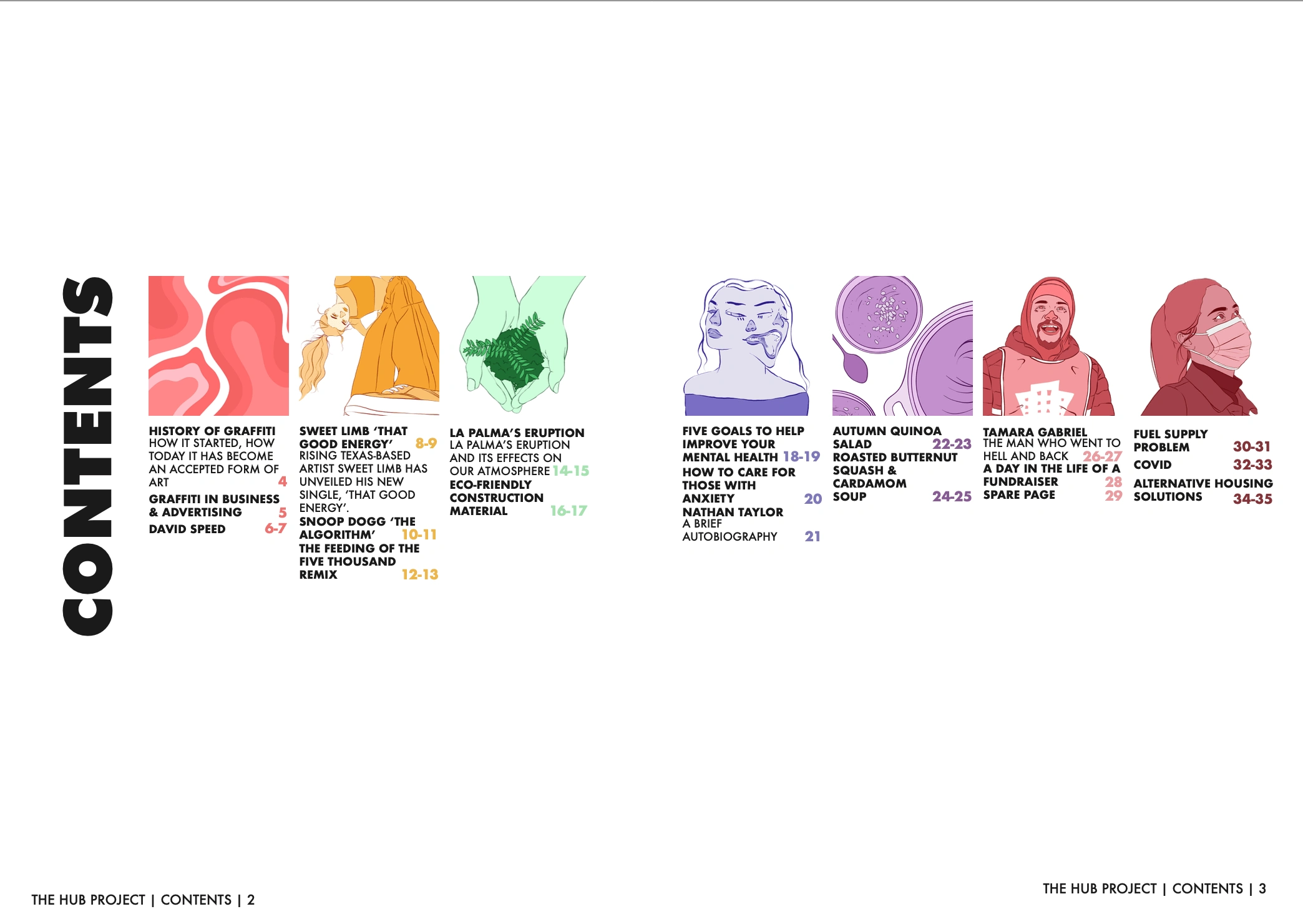 Spent 2 weeks on the layout and design of the Hub Magazine first issue. I also created multiple illustrations like the one in the inner cover and contents page.