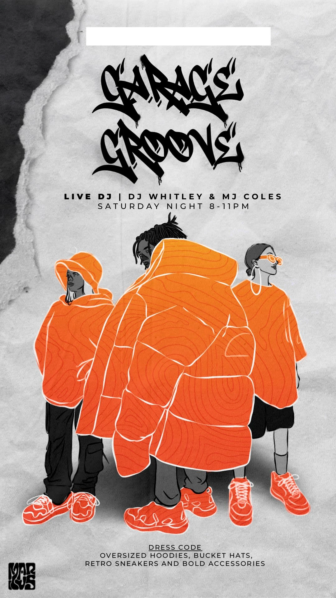 An illustration showcasing the general atmosphere and dress code of an upcoming event to promote it on social media, specifically through a story or reel.