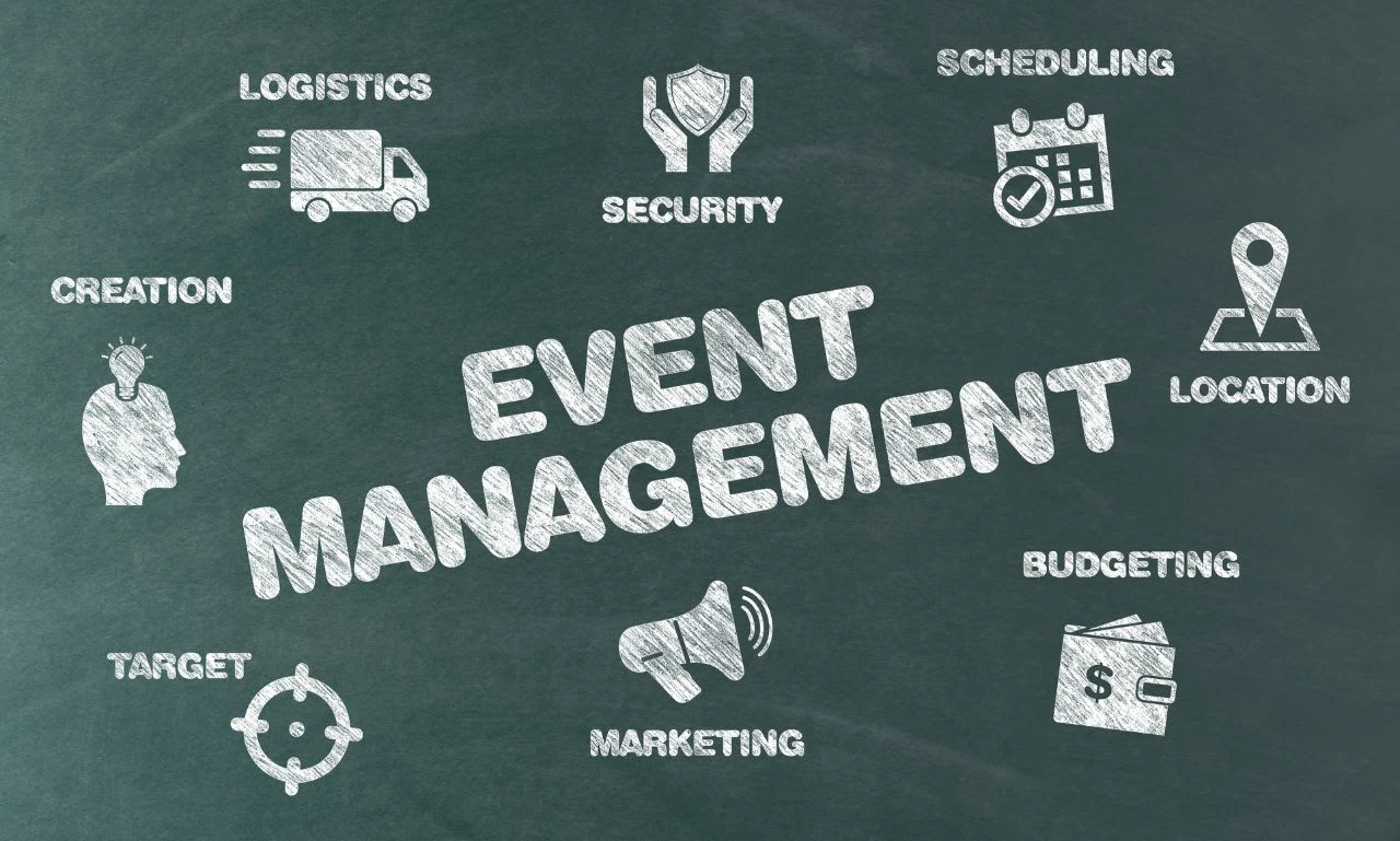 A visually appealing pitch deck for a US-based event management company, covering company description, funding need and uses, Project phases and outline.