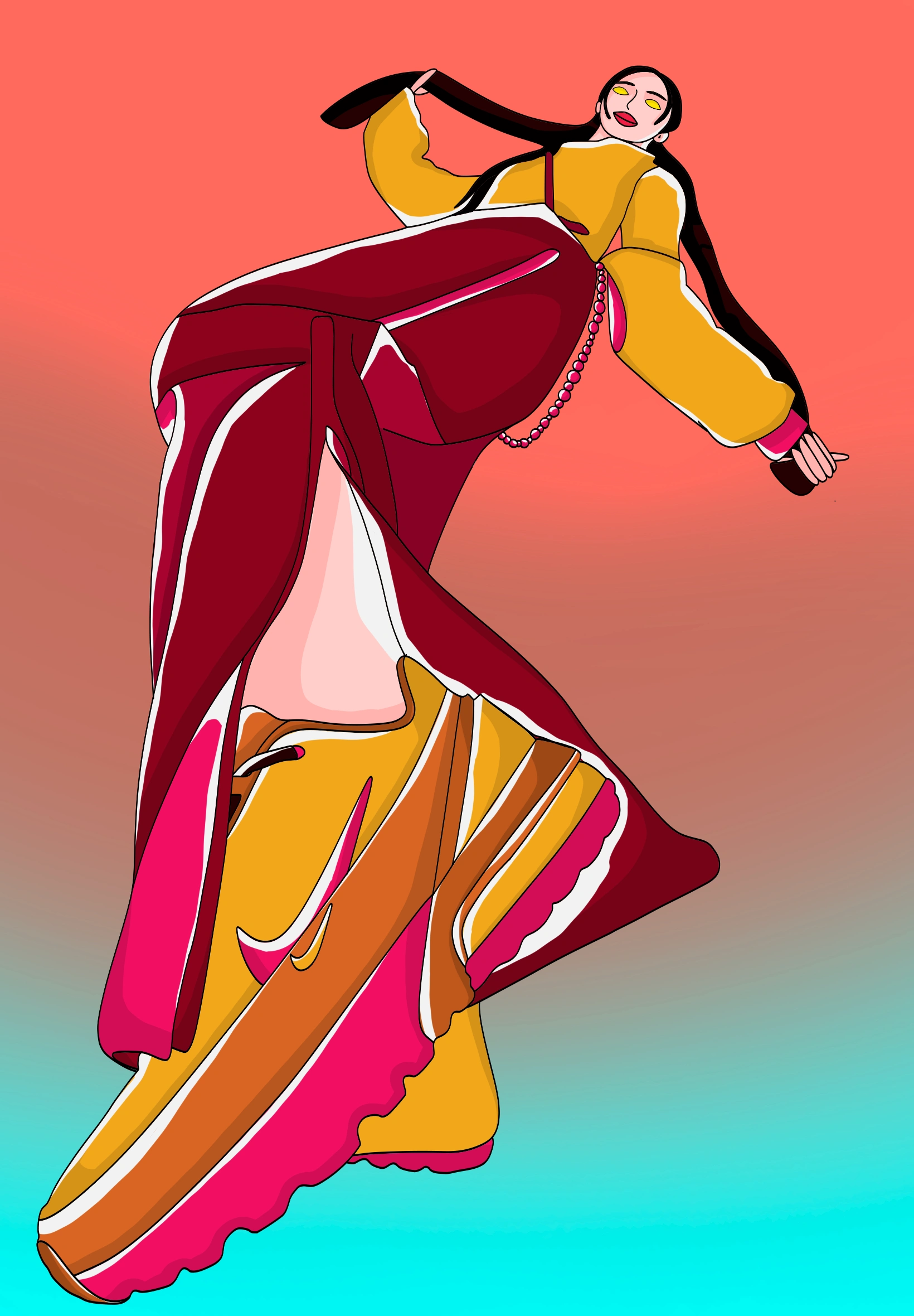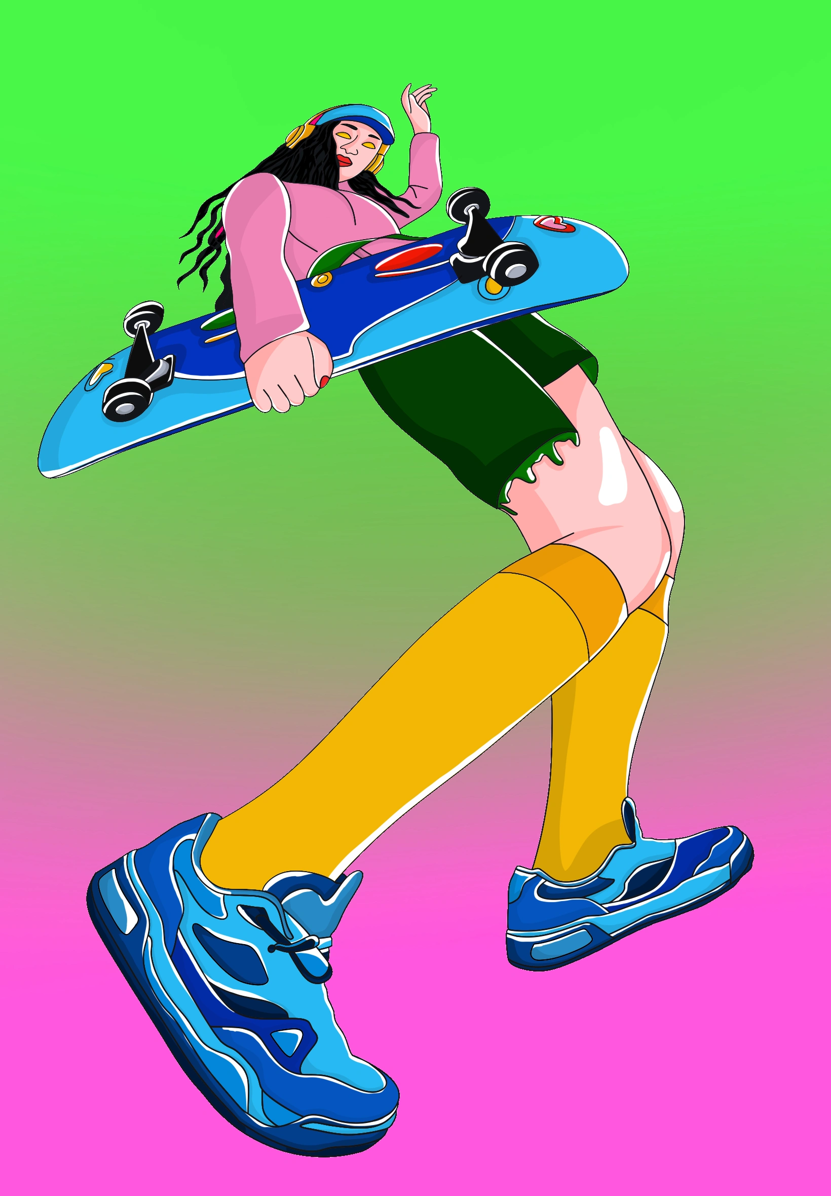 Character design illustration crafted with a bold and vibrant color palette, created using Adobe software. The design radiates energy and personality.