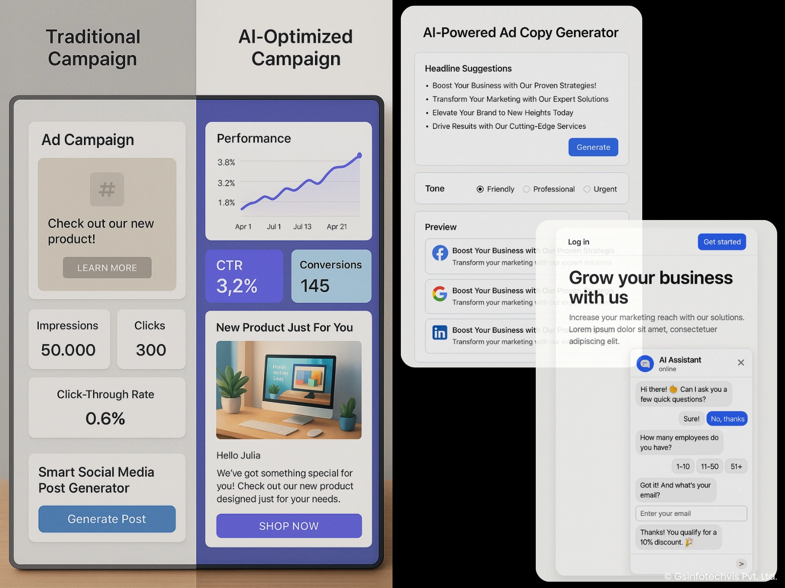 At Gsifotechvis, we believe that artificial intelligence is revolutionizing the digital marketing landscape, empowering businesses to reach their target audience with precision and efficiency. Our vision is to leverage AI-driven solutions to optimize marketing strategies, enhance customer engagement, and drive measurable growth.
