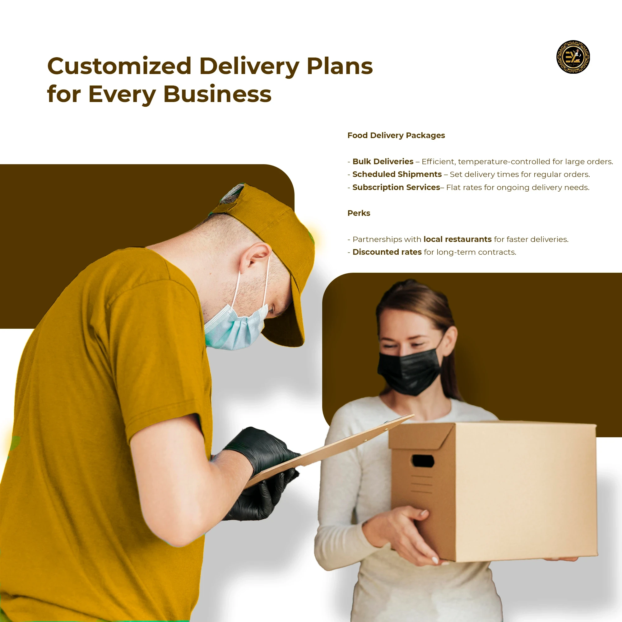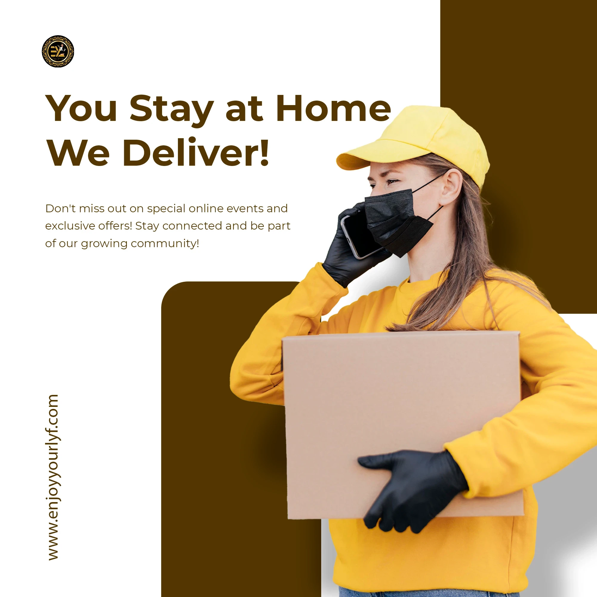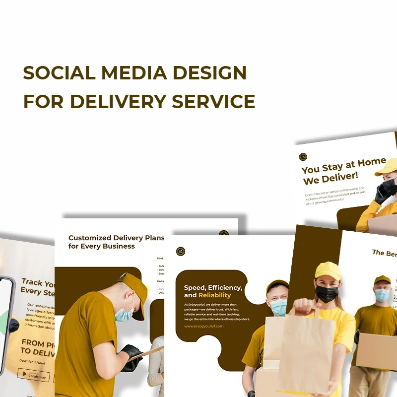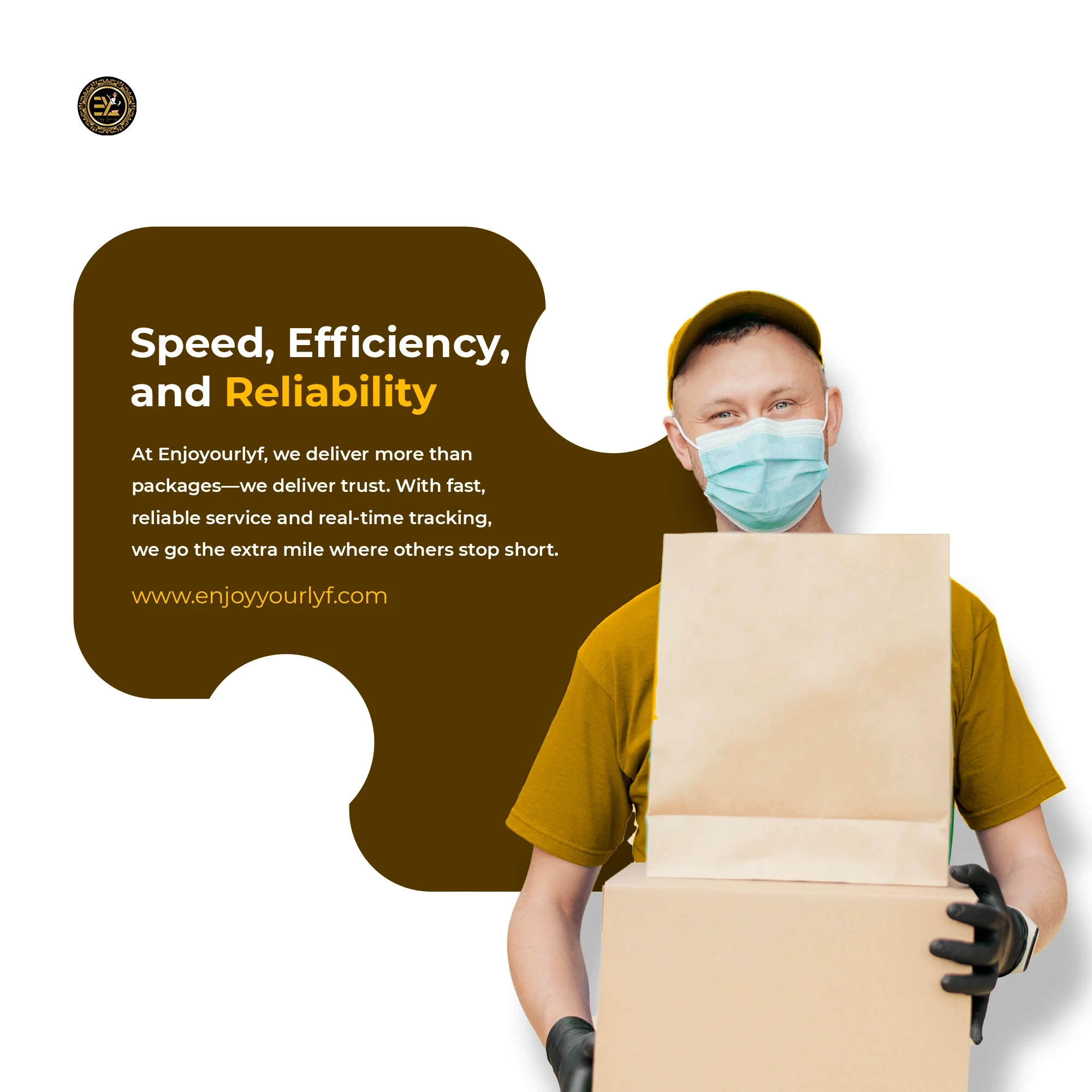 Social media carousel design for Enjoyyourlyf Hotel & Restaurant, promoting their fast and reliable delivery service with a clean, appetizing visual style.