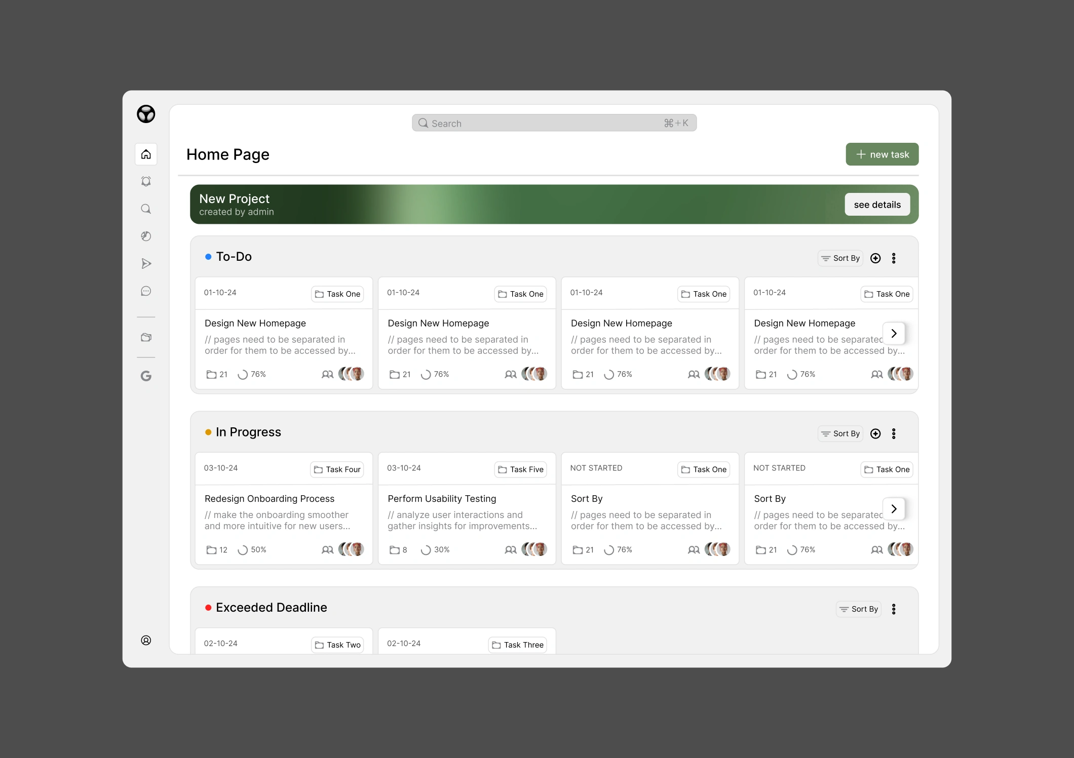 Aim was to create a very comprehensive dashboard for a task management web app without leaving the user feeling overwhelmed by the amount of info on the screen.