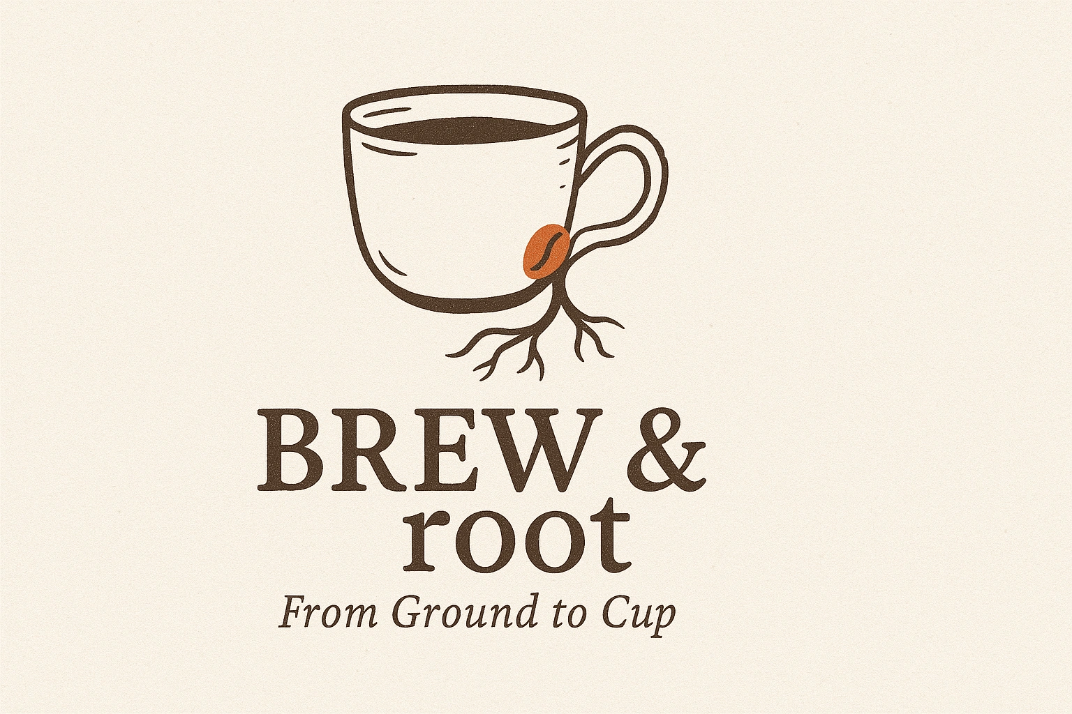Final Symbol: A minimalist coffee cup with a root forming the handle (symbolizing "groundedness" and quality beans).