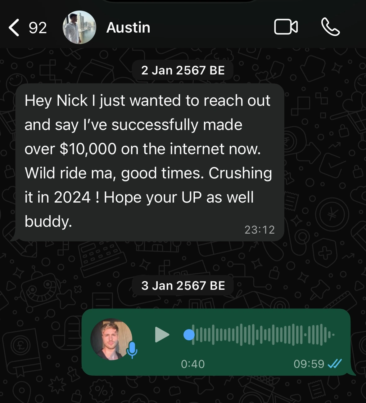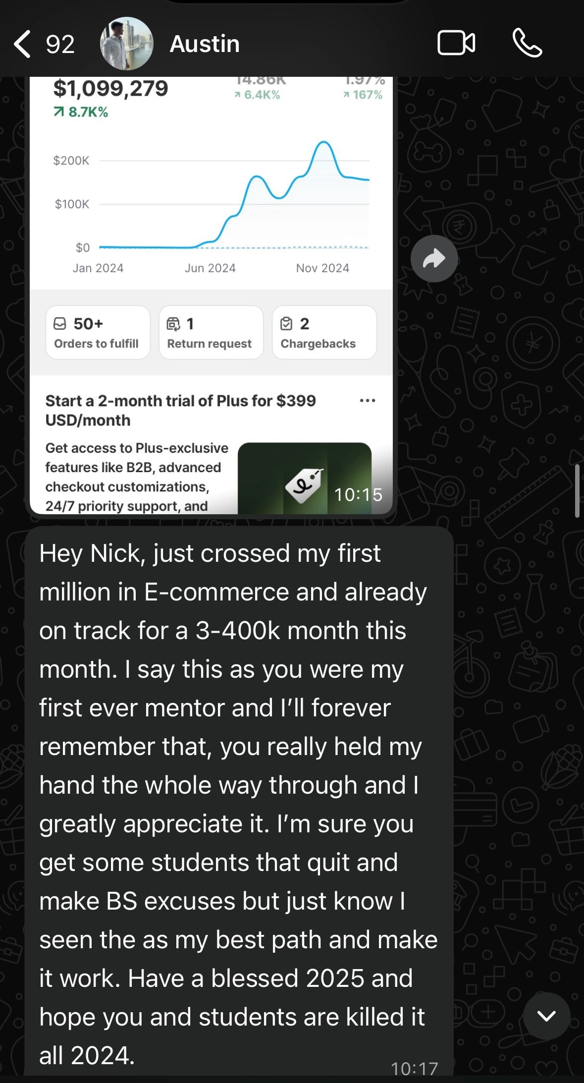 Years later, Austin messaged me to share that he had crossed $1M in revenue. He credited our early work together as one of the stepping stones that made it possible.
