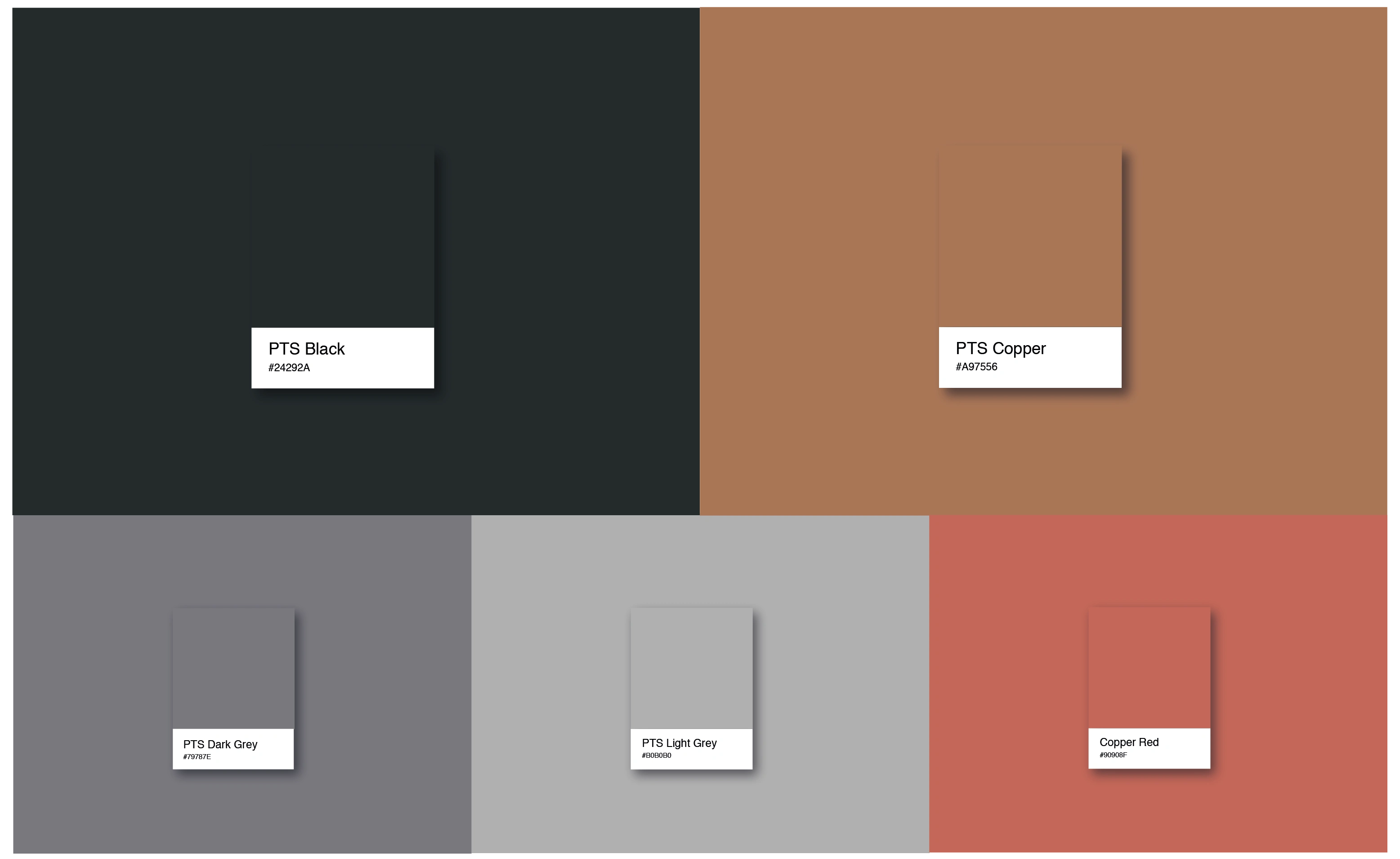 Through workshops and visual exploration, we found that the existing colour palette of black and copper still spoke to PTS’s professional and established image. These tones became the foundation of the new identity, giving the brand a sense of strength and refinement.