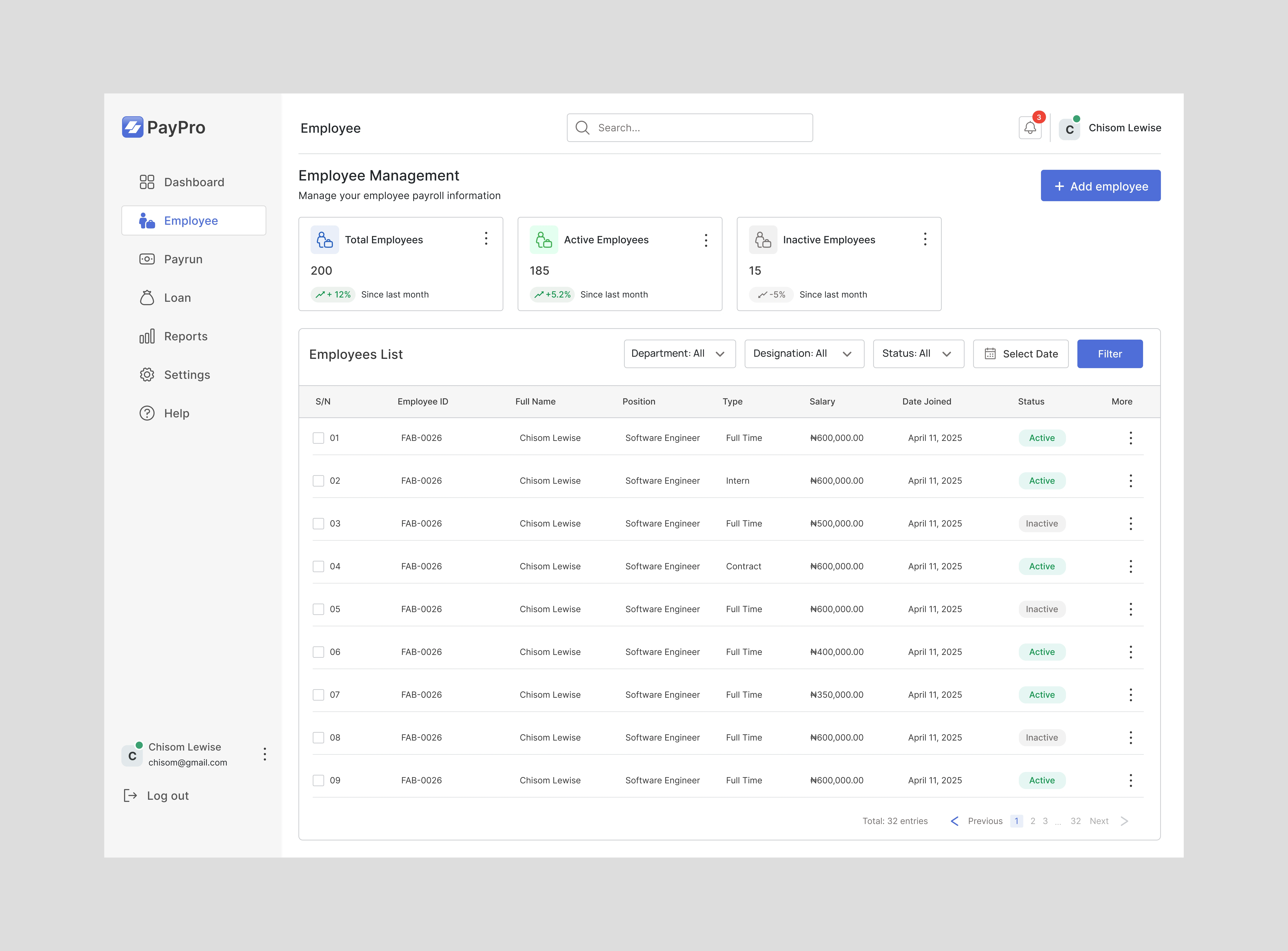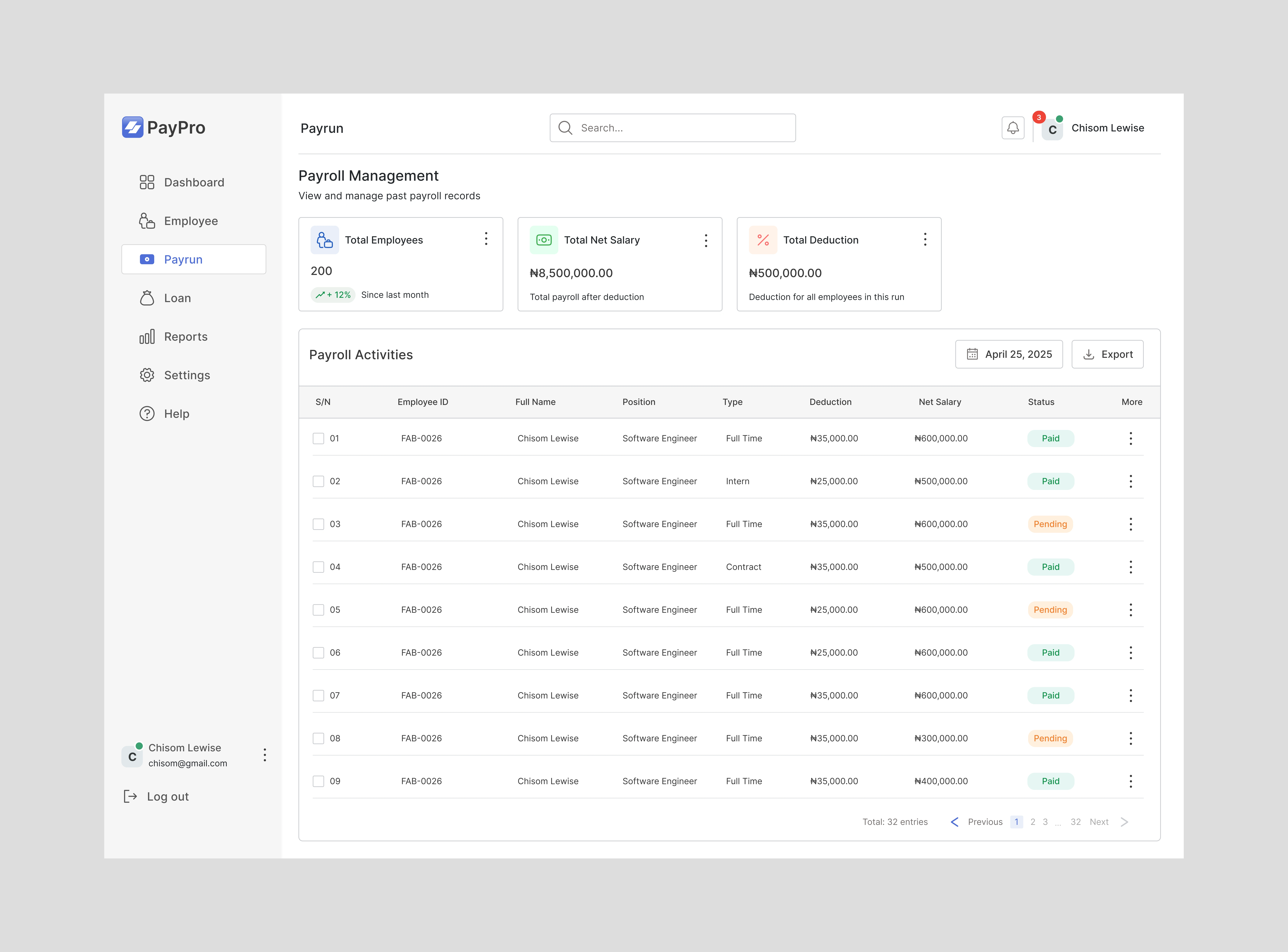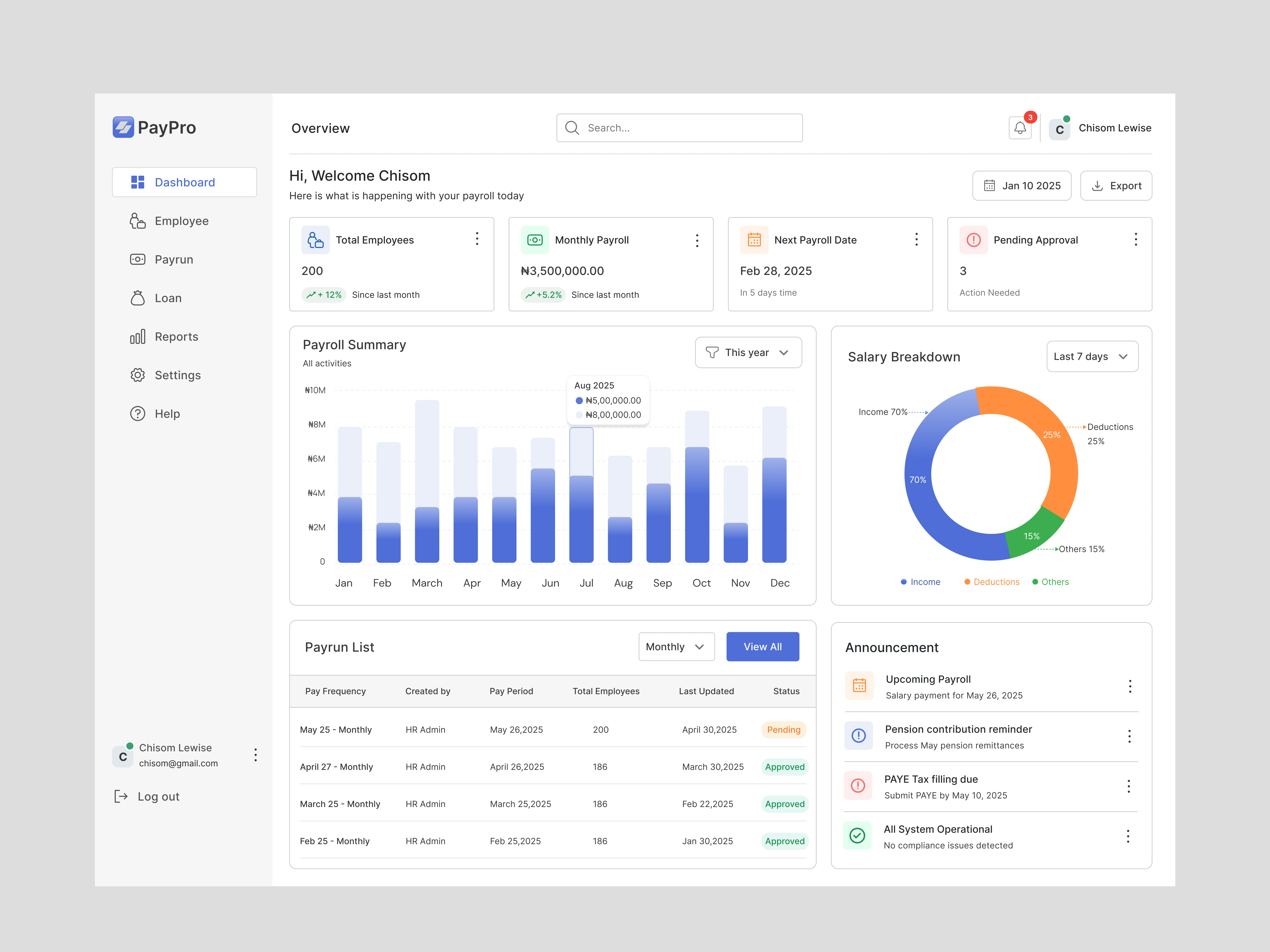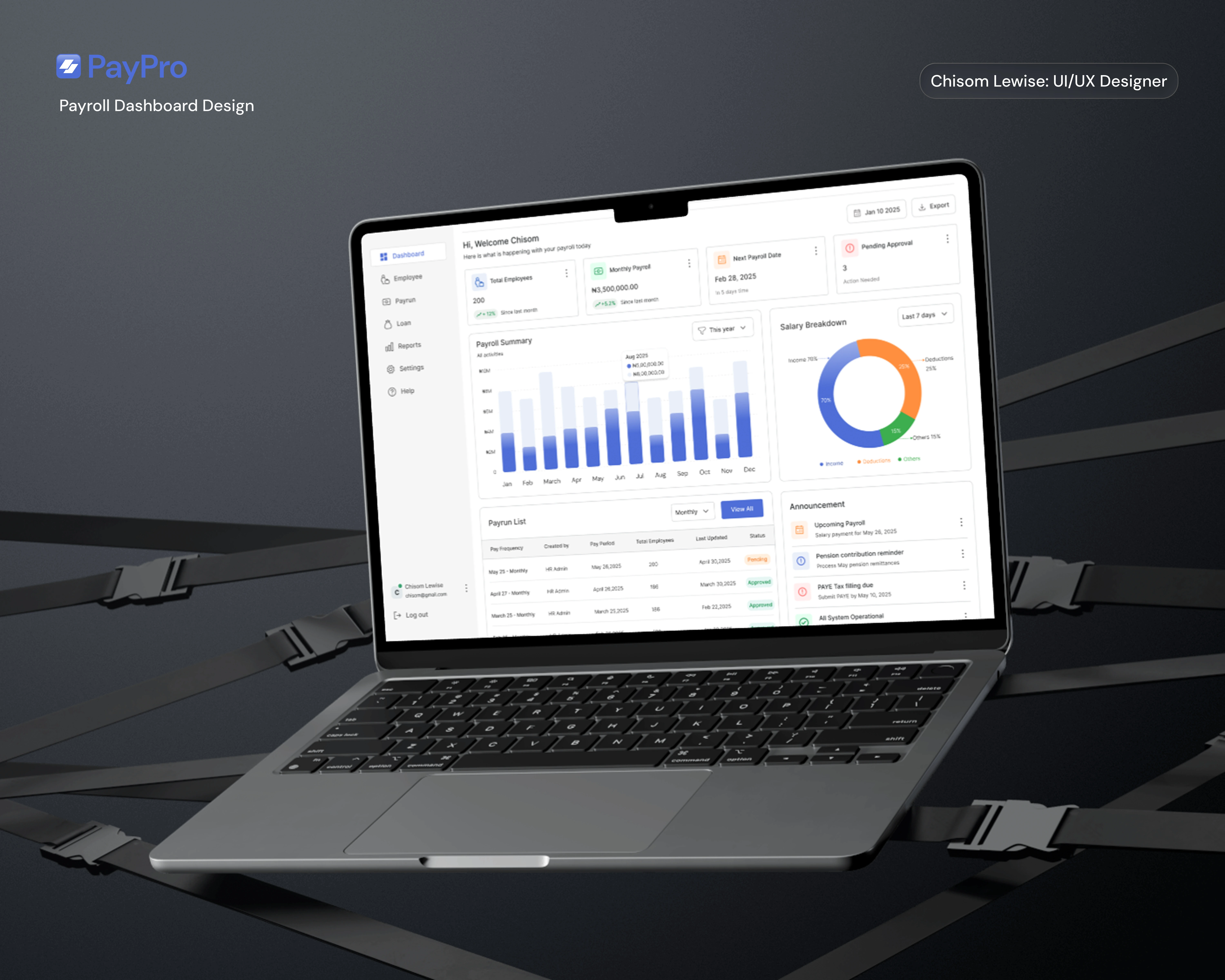 PayPro is a modern payroll web application concept designed to help HR teams and business owners manage employee records and run payroll with clarity and ease.