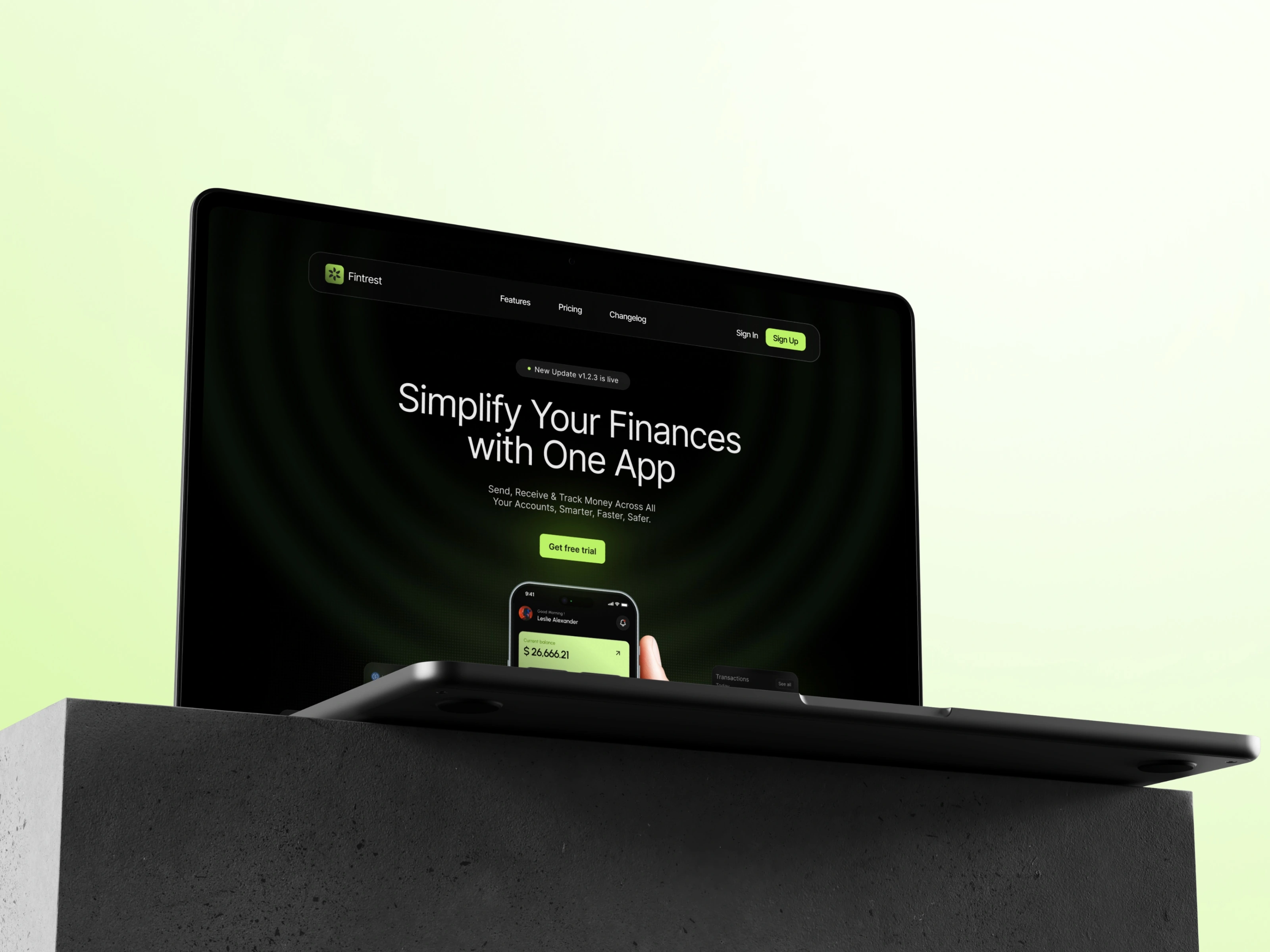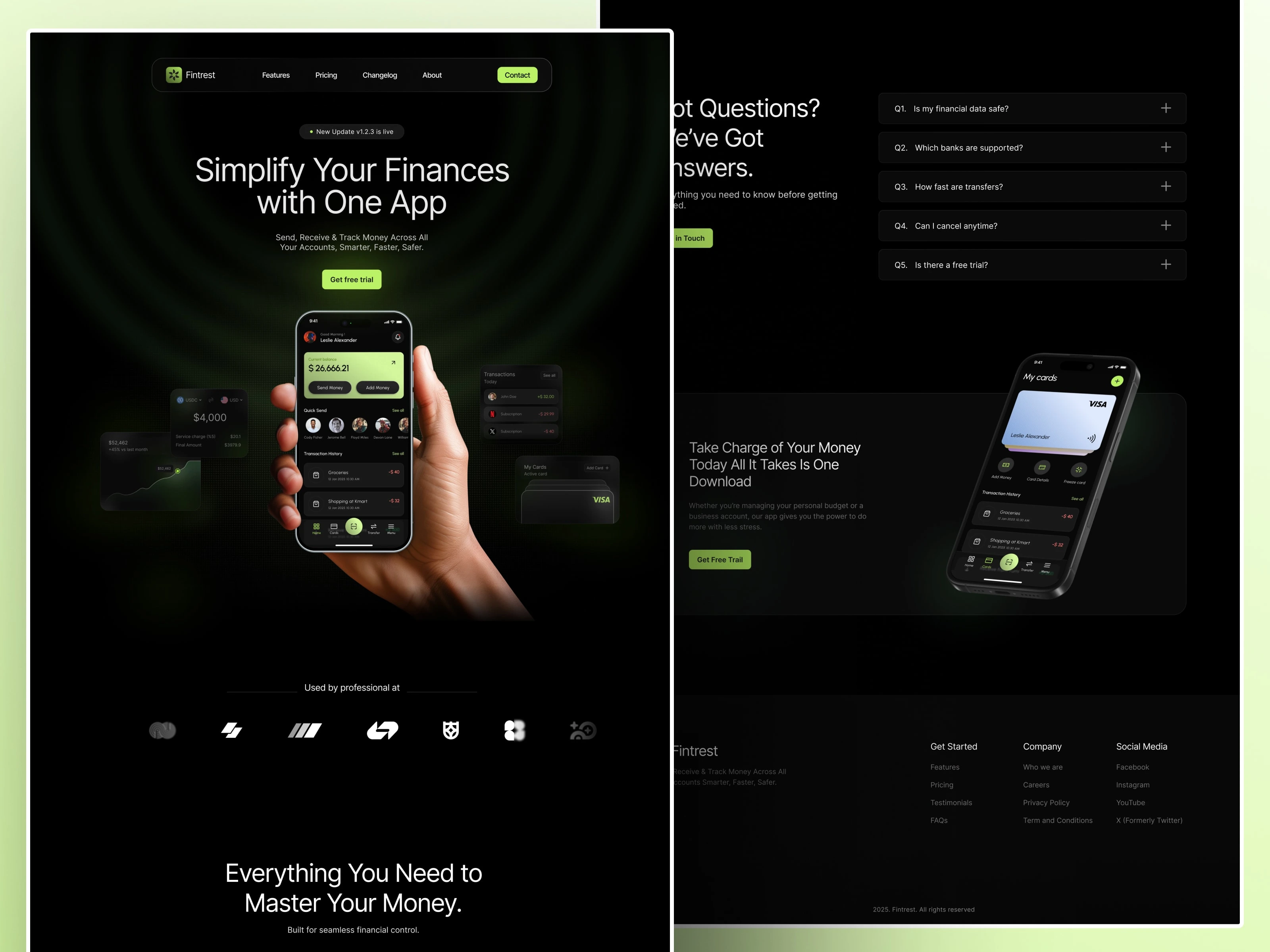 Fintech landing page designed in Figma