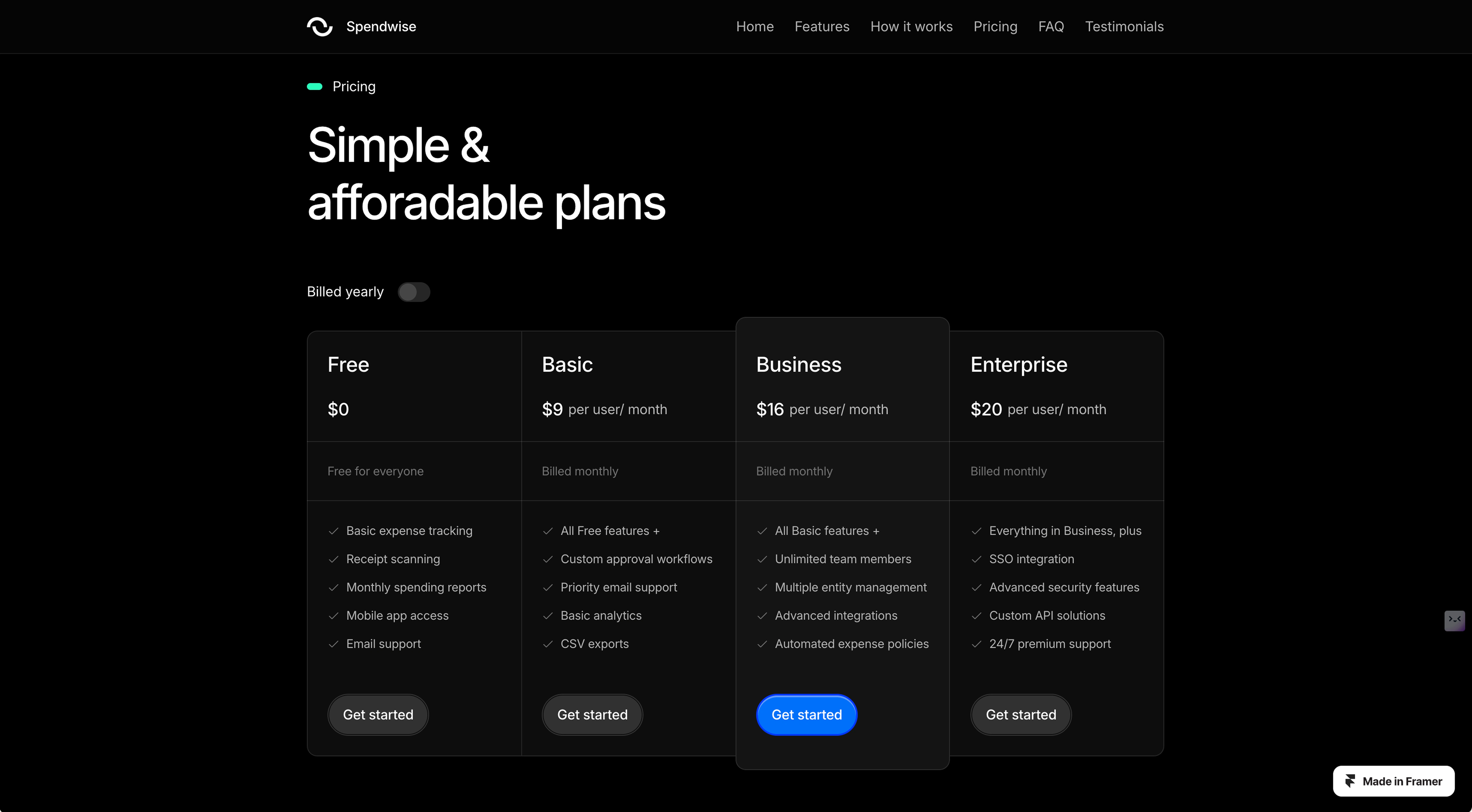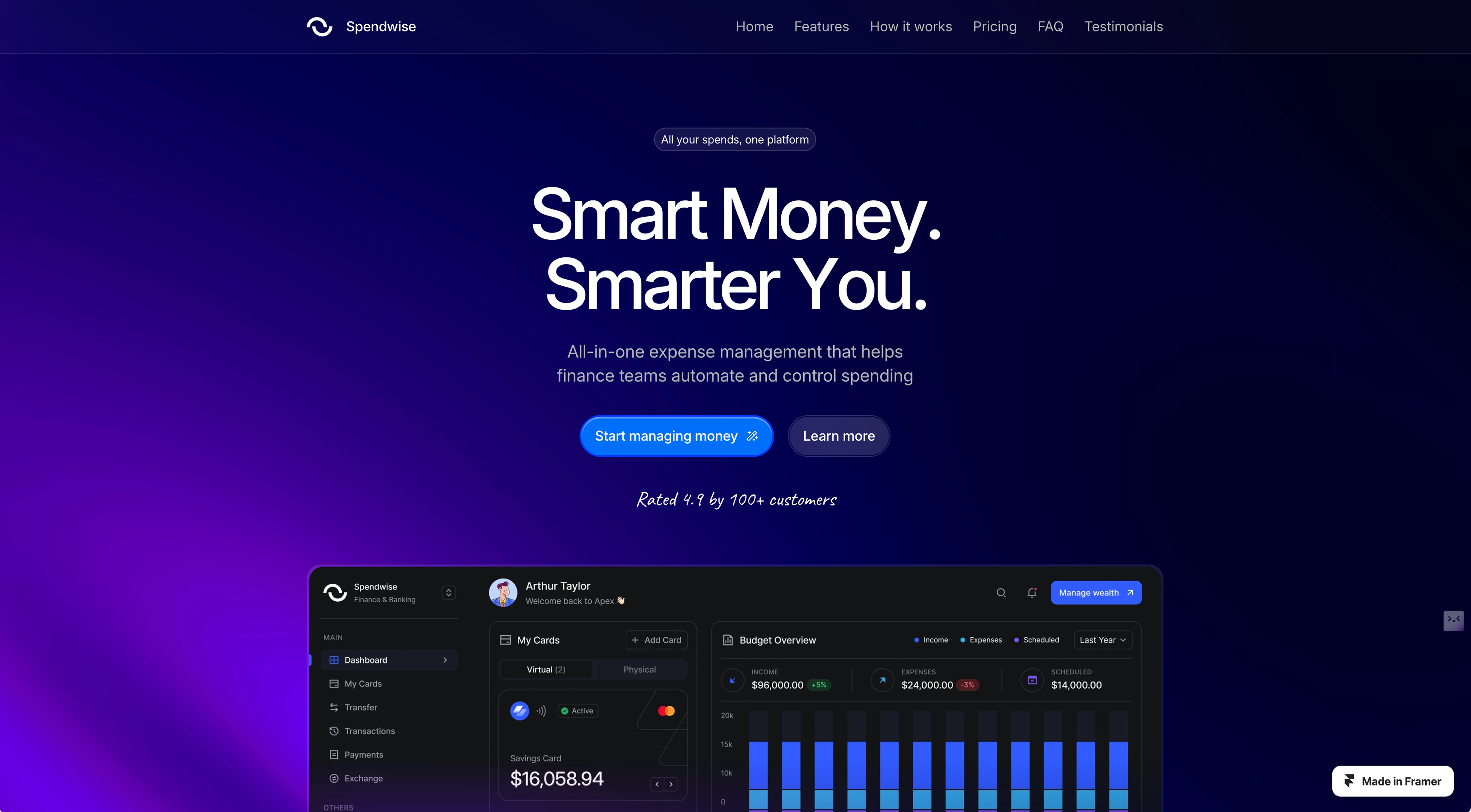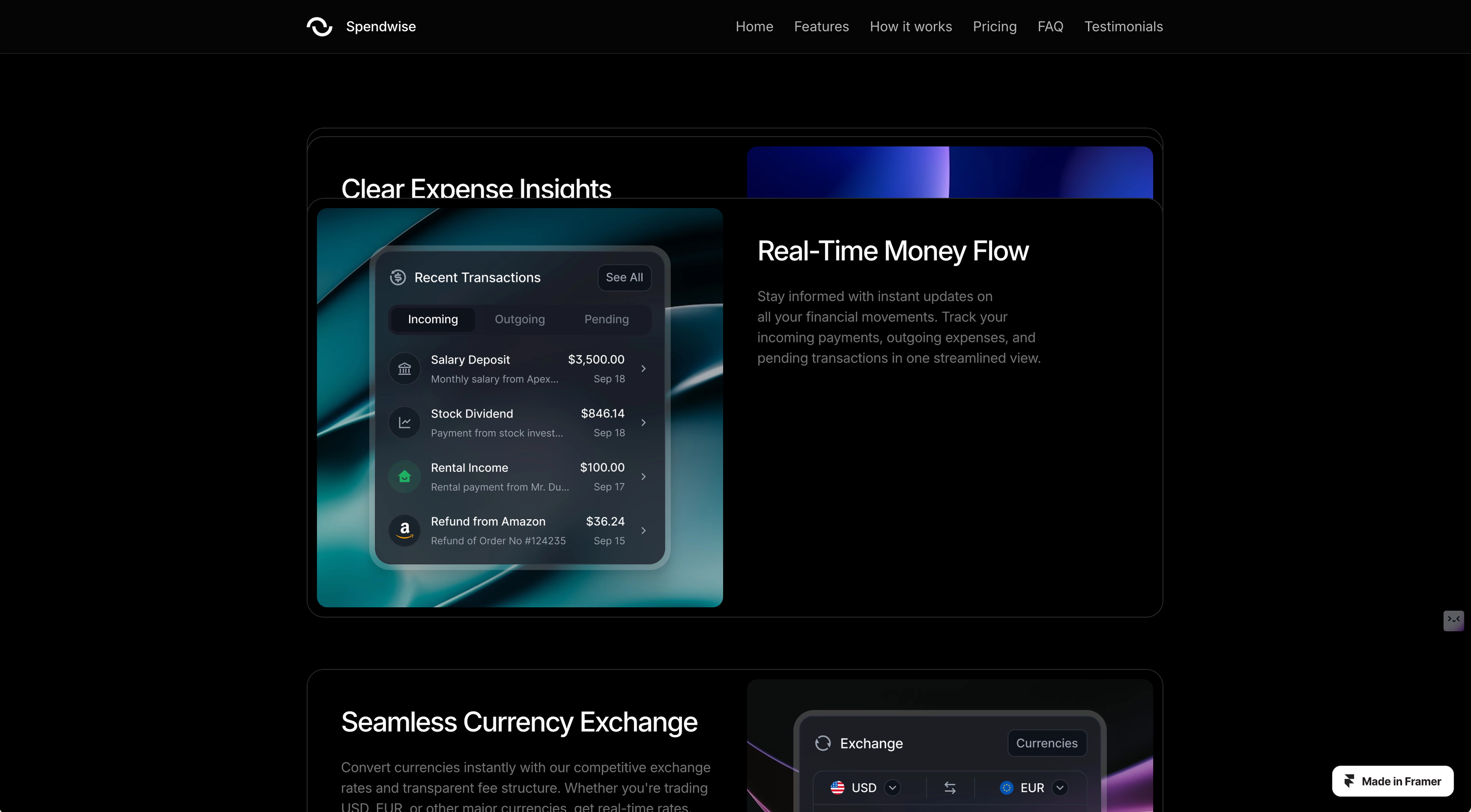Framer landing page template for fintech and payment companies.