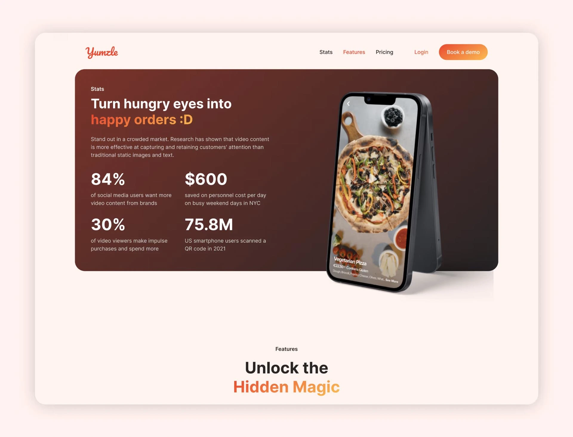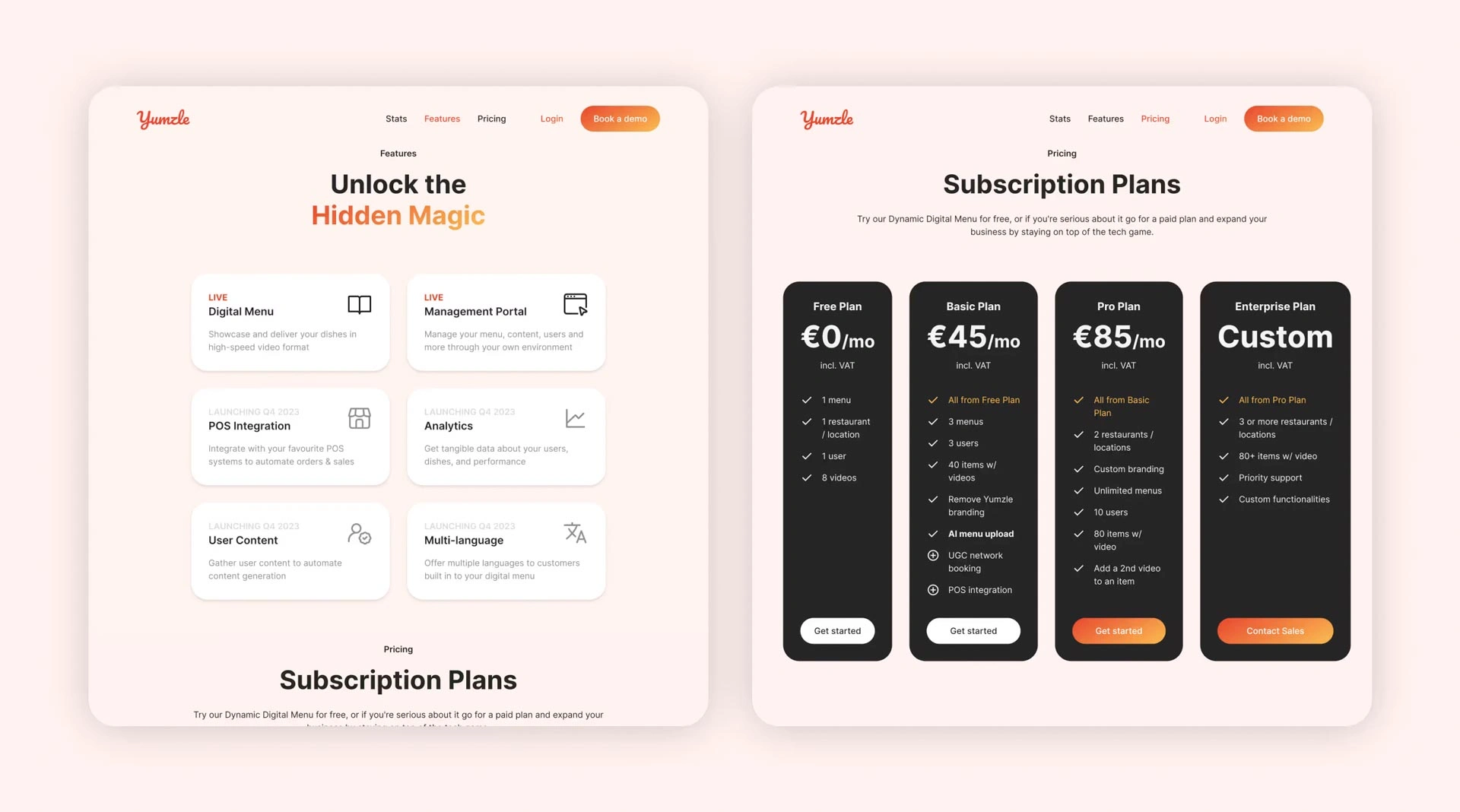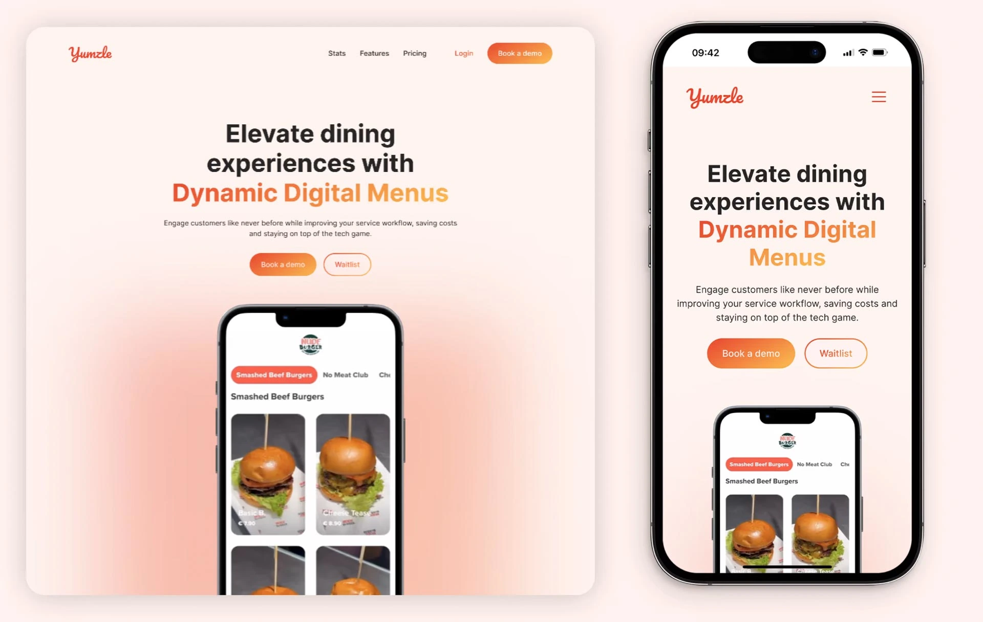 Yumzle needed to stand out in the competitive hospitality tech sector while offering an intuitive, engaging platform for both restaurant owners and diners. The challenge was to create a cohesive brand identity and user experience that would showcase the unique value of Yumzle's video-enhanced digital menus.